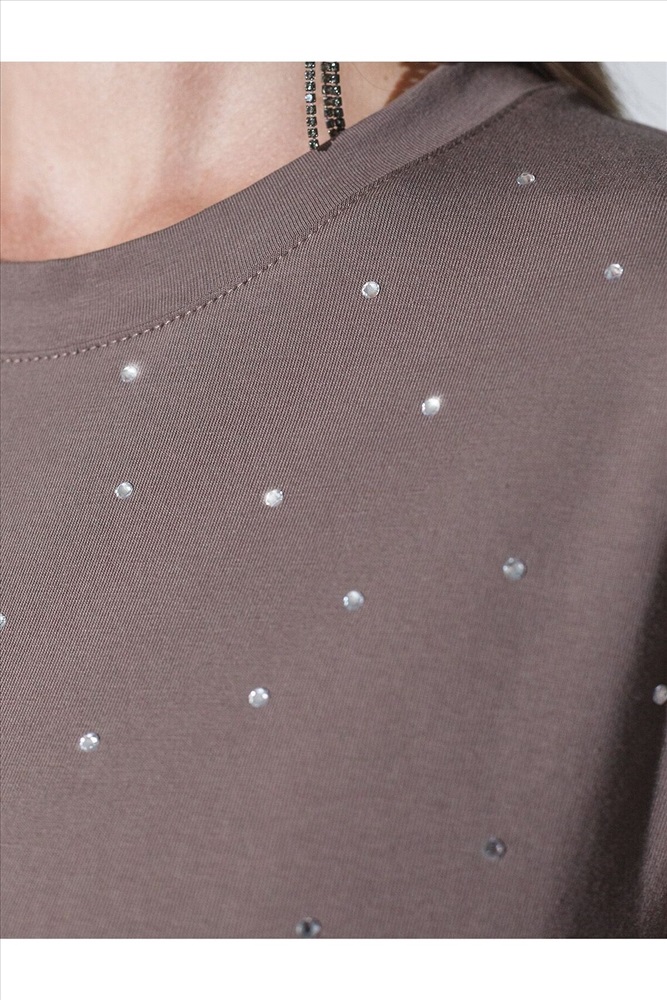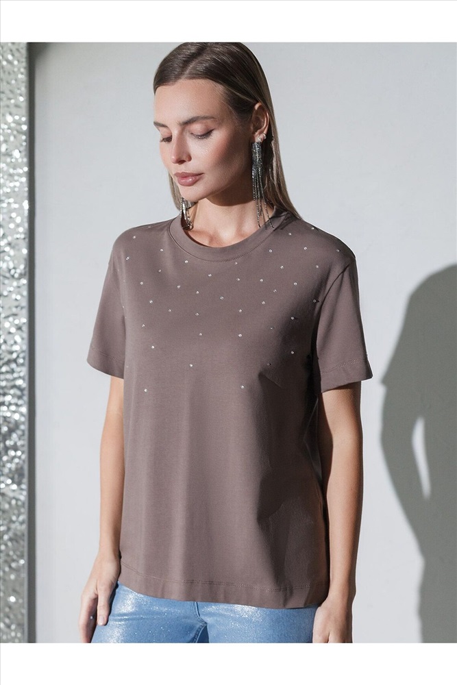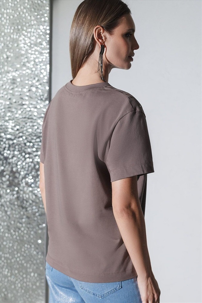 ID товара: 1214160 Состав: 92% Хлопок, 8% Полиуретан Сезон: Демисезон Длина: Средняя Фасон: Прямой Рукав: короткие Вырез горловины: Округлый Декоративные элементы: Стразы Основная ткань: Хлопок Стиль: Повседневный Страна бренда: Россия Страна производства: Китай Стильная базовая футболка кофейного цвета с принтом стразами выполнена из плотного хлопка с эластаном для комфортной посадки на любую фигуру. Прямая футболка классического кроя с круглым вырезом, прекрасно подходит для разных типов фигуры, в том числе и на большие размеры. Мягкость хлопка вместе с небольшой долей эластана гарантирует идеальную посадку и свободу движений. Легкая натуральная дышащая ткань премиального качества делает футболку с коротким рукавом идеальным вариантом для повседневной носки дома, на работу или офис. Однотонная футболка дополнена авторским аккуратным принтом, который придает праздничный и элегантный вид без лишней вычурности. Блестящий принт в виде россыпи страз аккуратно украшает, добавляя изысканный акцент и создавая легкий мерцающий эффект. Эта эффектная футболка станет отличным выбором на праздник, подчеркивая образ сияющей и уверенной в себе девушки или женщины. Если вы ищете комфортный и одновременно привлекательный наряд для особых моментов, эта футболка станет надежным Комментарии к товару