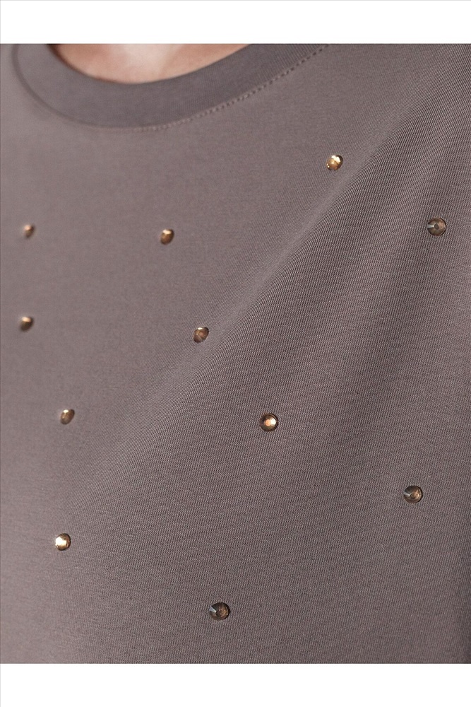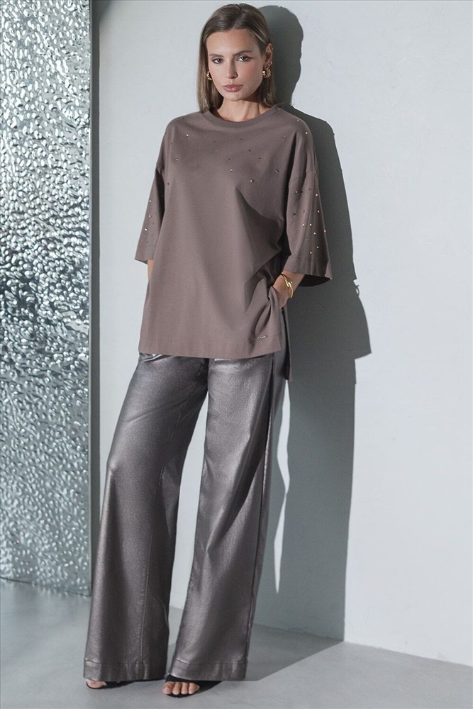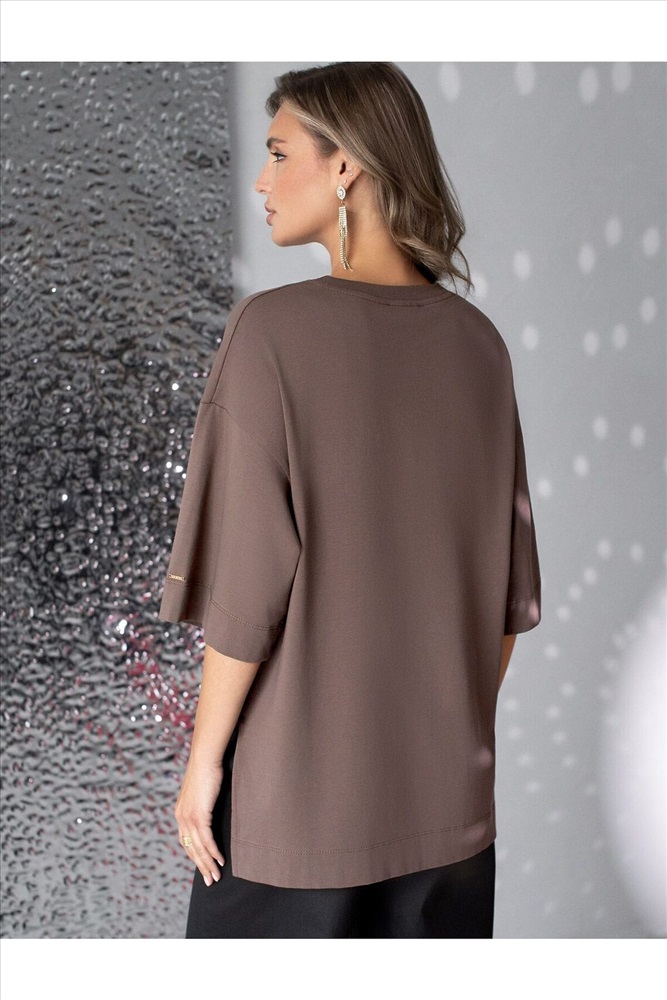 ID товара: 1214164 Состав: 92% Хлопок, 8% Полиуретан Сезон: Демисезон Длина: Средняя Фасон: Свободный Рукав: Короткие Вырез горловины: Округлый Декоративные элементы: Стразы Основная ткань: Хлопок Стиль: Повседневный Страна бренда: Россия Страна производства: Китай Оверсайз футболка кофейного цвета из премиального хлопка с добавлением эластана создана для комфорта и стиля каждый день. Натуральный материал приятный к телу, дышащая ткань хорошо держит форму и подходит для повседневной носки дома, в офисе или на прогулке. Классический свободный крой, удлиненный прямой силуэт и свободная посадка делают эту базовую футболку универсальным решением для любой фигуры и роста, включая плюс сайз размеры и беременных девушек, отлично скроет животик. Широкие рукава держвт форму и подойдут на полные руки. Нарядная футболка украшена авторским принтом в виде россыпи страз в тон основного полотна, которые создают красивый мерцающий эффект. Такой акцент делает модель уместной как для особых случаев, так и для ежедневных образов. Такая эффектная длинная футболка станет универсальным дополнением гардероба, позволяя создавать разнообразные образы с акцентом на современный стиль и утонченность деталей. Благодаря стильному дизайну с боковыми разрезами эта футболка станет идеальным вариантом Комментарии к товару