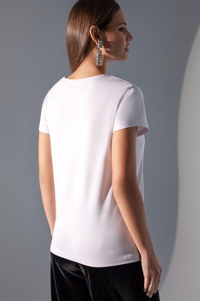 Производитель: VILATTE ID товара: 1214298 Состав: 92% Хлопок, 8% Полиуретан Сезон: Демисезон Длина: Средняя Фасон: Прямой Рукав: короткие Вырез горловины: Округлый Декоративные элементы: Стразы Основная ткань: Хлопок Стиль: Повседневный Страна бренда: Россия Страна производства: Китай