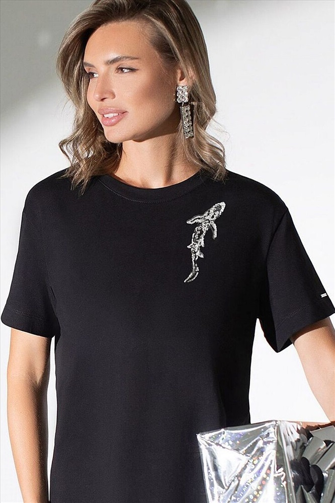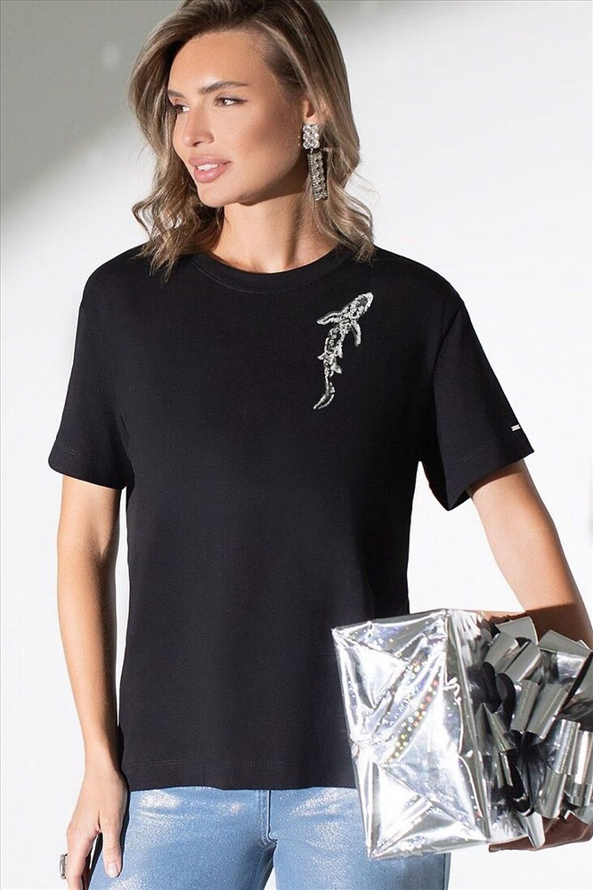 ID товара: 1214302 Состав: 92% Хлопок, 8% Полиуретан Сезон: Демисезон Длина: Средняя Фасон: Прямой Рукав: короткие Вырез горловины: Округлый Декоративные элементы: Пайетки Основная ткань: Хлопок Стиль: Повседневный Страна бренда: Россия Страна производства: Китай Стильная базовая футболка черного цвета с принтом пайетками в виде рыбки выполнена из плотного хлопка с эластаном для комфортной посадки на любую фигуру. Прямая футболка классического кроя с круглым вырезом, прекрасно подходит для разных типов фигуры, в том числе и на большие размеры. Мягкость хлопка вместе с небольшой долей эластана гарантирует идеальную посадку и свободу движений. Легкая натуральная дышащая ткань премиального качества делает футболку с коротким рукавом идеальным вариантом для повседневной носки дома, на работу или офис. Однотонная футболка дополнена авторским аккуратным принтом зебра, который придает праздничный и элегантный вид без лишней вычурности. Блестящий анималистичный принт аккуратно украшает, добавляя изысканный акцент и создавая легкий мерцающий эффект. Эта эффектная футболка станет отличным выбором на праздник, подчеркивая образ сияющей и уверенной в себе девушки или женщины. Если вы ищете комфортный и одновременно привлекательный наряд для особых моментов, эта футболка стане Комментарии к товару