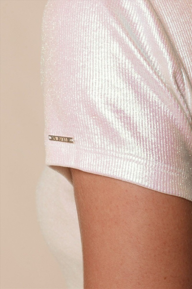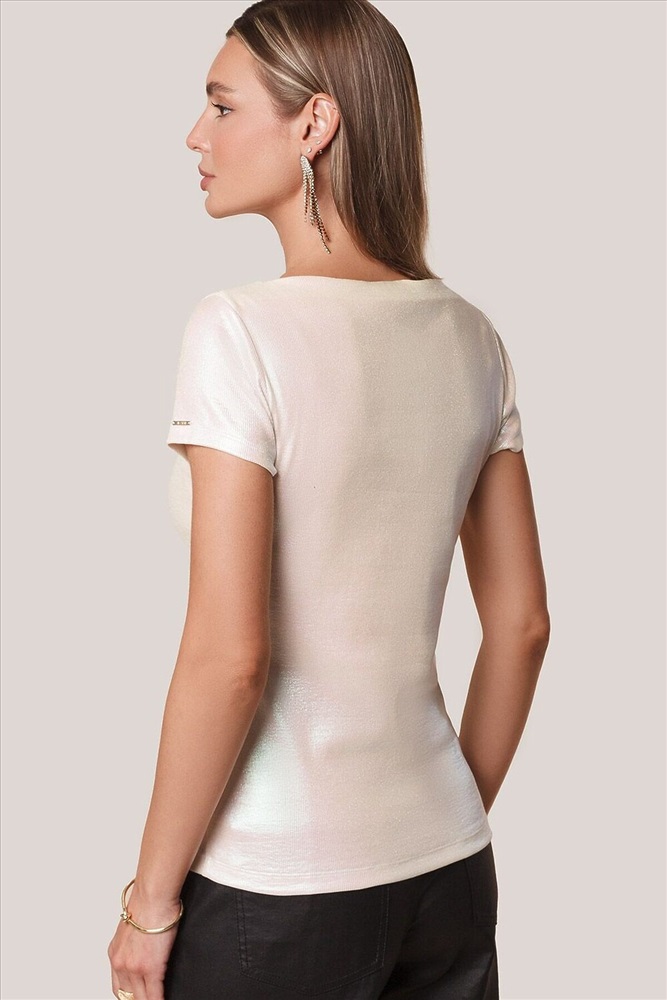 ID товара: 1224454 Состав: 95% Хлопок, 5% Полиуретан Сезон: Демисезон Длина: Средняя Фасон: Облегающее Рукав: короткие Вырез горловины: Лодочка Основная ткань: Хлопок Стиль: Нарядный Страна бренда: Россия Страна производства: Китай Стильная футболка перламутрового цвета с вырезом лодочка выполнена из премиального хлопка с добавлением эластана. Эффектное матовое покрытие металлик придает футболке изысканный блеск. Вырез лодочка добавляет элегантности и женственности образу. Мелкий рубчик визуально вытягивает силуэт, за счет эластана в составе материал прекрасно тянется и садится на любую фигуру, в том числе большие размеры. Ткань износостойкая, сохраняет свой превоначальный вид даже после многочисленных стирок, отличается мягкостью и приятными тактильными ощущениями, такой материал не раздражает кожу, дарит ощущение уюта даже при длительном ношении, а воздухопроницаемость позволяет коже свободно дышать. Повседневная футболка универсальна: она сочетается с джинсами, юбками или строгими брюками — легко создать как деловой образ для офиса, так и наряд для вечеринки или ужина вне дома. Матовое покрытие создает благородный блеск без лишней яркости, благодаря чему футболка смотрится свежо и актуально. Комментарии к товару