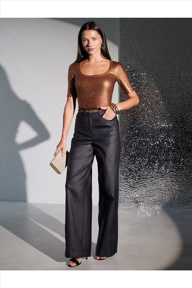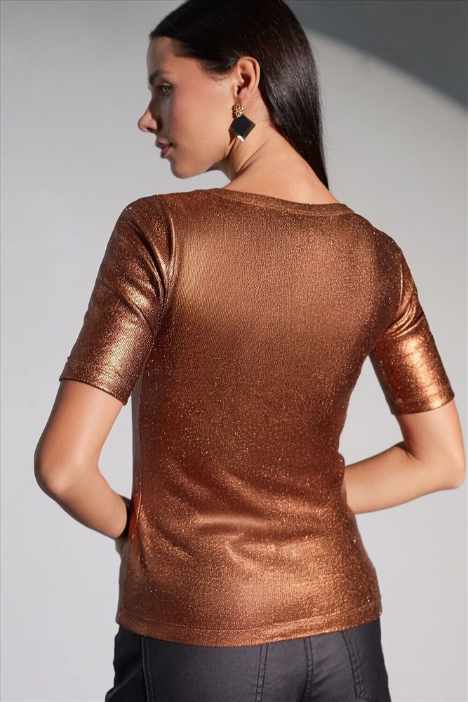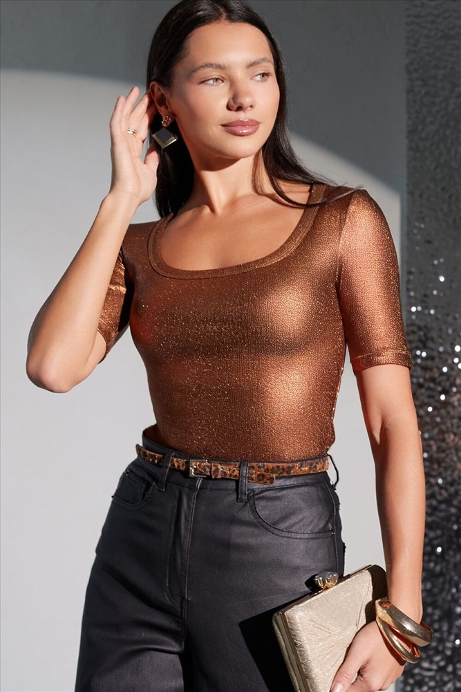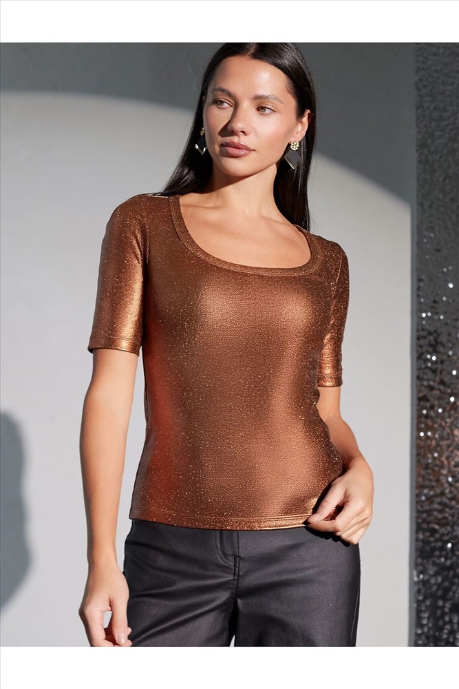 ID товара: 1224456 Состав: 95% Хлопок, 5% Полиуретан Сезон: Демисезон Длина: Средняя Фасон: Облегающий Рукав: короткие Вырез горловины: U-образный Основная ткань: Хлопок Стиль: Нарядный Страна бренда: Россия Страна производства: Китай Стильная футболка кофейного цвета с U вырезом выполнена из премиального хлопка с добавлением эластана. Эффектное матовое покрытие металлик придает футболке изысканный блеск. Чуть удлиненные рукава и глубокий круглый вырез, открывающий область декольте, добавляют женственность и элегантность образу. Мелкий рубчик визуально вытягивает силуэт, за счет эластана в составе материал прекрасно тянется и садится на любую фигуру, в том числе большие размеры. Ткань износостойкая, сохраняет свой превоначальный вид даже после многочисленных стирок, отличается мягкостью и приятными тактильными ощущениями, такой материал не раздражает кожу, дарит ощущение уюта даже при длительном ношении, а воздухопроницаемость позволяет коже свободно дышать. Повседневная футболка универсальна: она сочетается с джинсами, юбками или строгими брюками — легко создать как деловой образ для офиса, так и наряд для вечеринки или ужина вне дома. Матовое покрытие создает благородный блеск без лишней яркости, благодаря чему футболка смотрится св Комментарии к товару