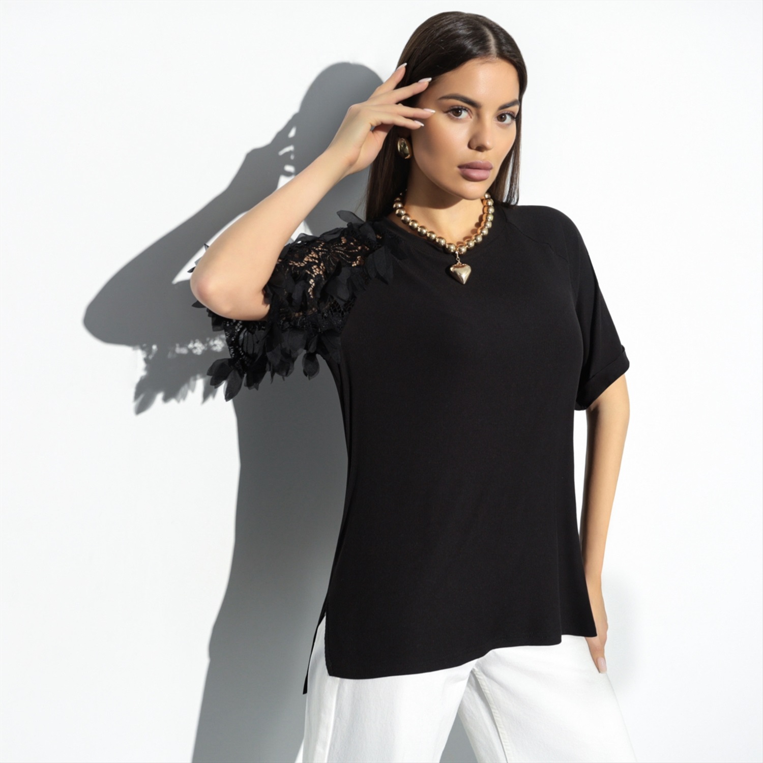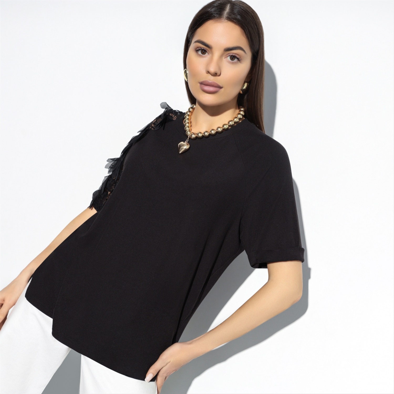 Он хвастается перед друзьями тем, как быстро ты собираешься, и он никогда тебя не ждёт. Все дело в футболке CHARUTTI. В меру нарядная, стильная, в классическом черном цвете – ты просто выбираешь её и уже готова.
