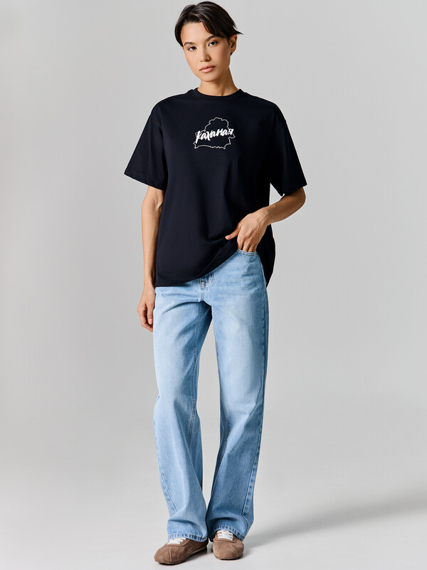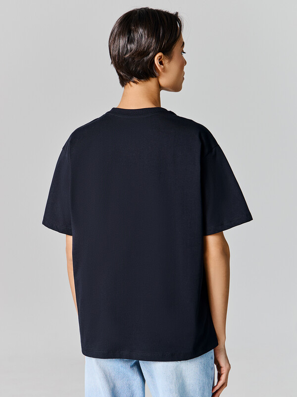 Эта женская футболка из трикотажной кулирки — стильный и удобный выбор для повседневного гардероба. Модель отличается свободным силуэтом и круглым вырезом, обеспечивая комфорт и свободу движений благодаря спущенной линии плеча и углубленной пройме. Широкие рукава, чуть выше локтя, добавляют оригинальности и делают футболку еще более удобной. Эта стильная модель прекрасно сочетается с различными элементами гардероба, добавляя непринужденный и модный акцент в ваш образ.