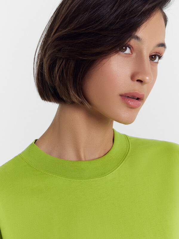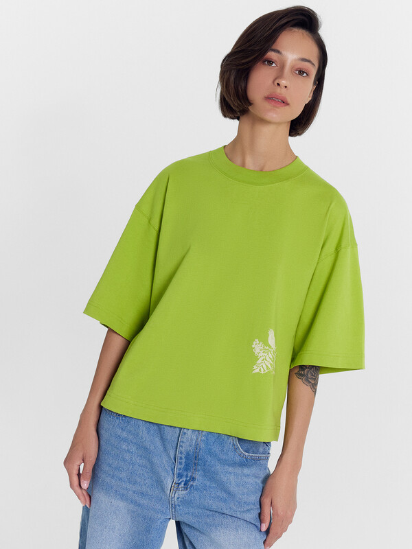 Стильная футболка свободного силуэта. Выполнена из трикотажной хлопковой кулири. Круглый вырез декольте, чуть удлиненные рукава классическая длина – ничего лишнего. Спущенная линия плеча и углубленные проймы подарят свободу движений!