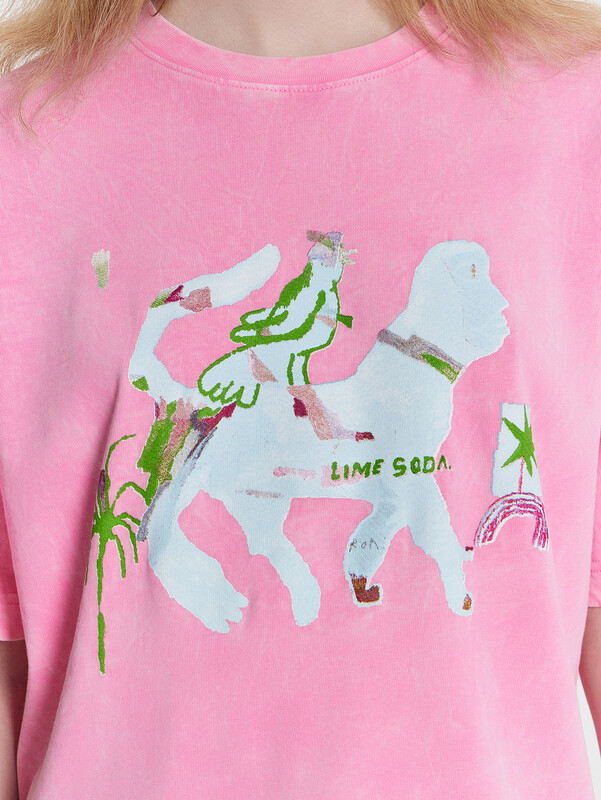 Нижние срезы футболки и рукавов обработаны швом вподгибку.