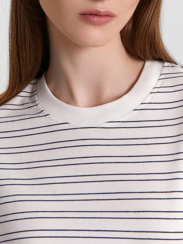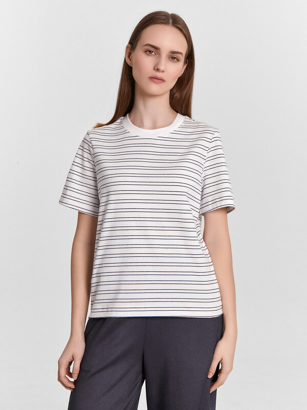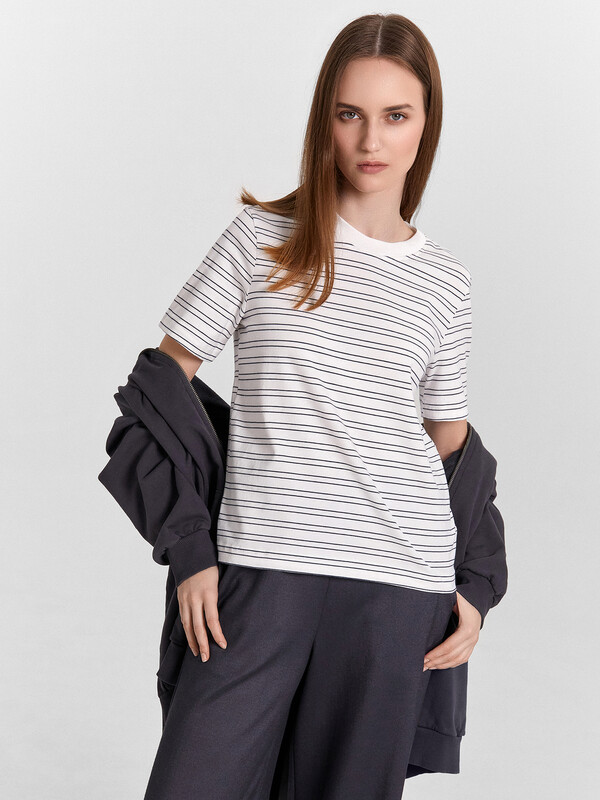 Женская футболка прямого силуэта – сочетание простоты и изящного стиля. Модель выполнена из качественной хлопковой кулирки, обеспечивающей комфорт и воздухопроницаемость. Круглая горловина с широкой обтачкой из рибаны придаёт изделию аккуратный и завершённый вид, а широкий рукав добавляет современности и свободы движений. Слегка укороченный фасон подчёркивает стильный образ, а широкая подгибка низа и рукавов делают акцент на деталях, создавая гармоничный внешний вид. Эта футболка станет универсальным элементом вашего гардероба, легко сочетающимся с джинсами, шортами или юбками. Идеальный выбор для тех, кто ищет баланс между удобством и стильным дизайном.