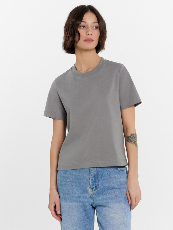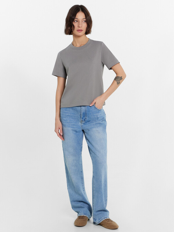 Производитель: Mark Formelle Футболка прямого силуэта из трикотажного полотна кулирка. Горловина круглой формы, широкая обтачка из рибаны.