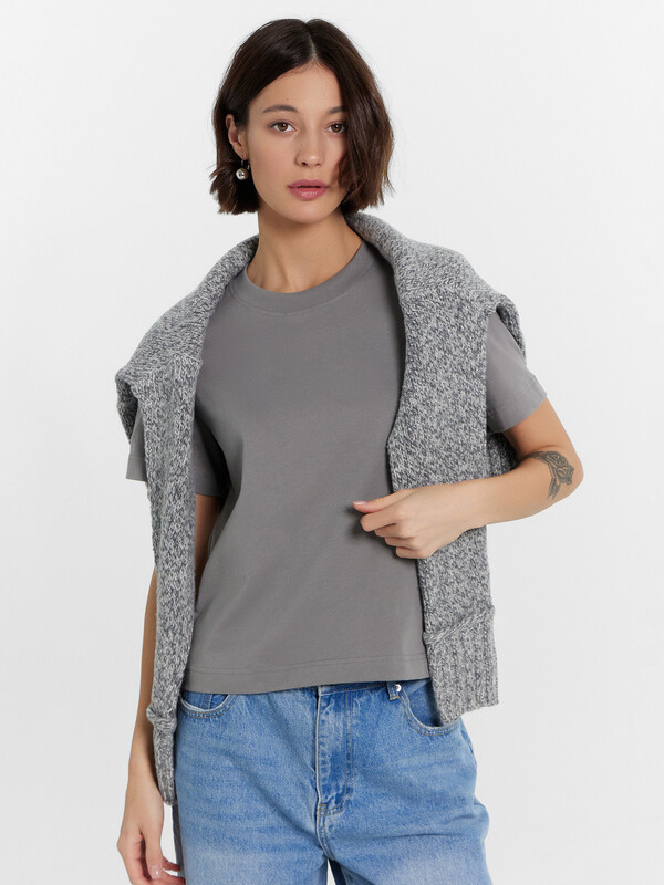 Рукав втачной, широкий. Футболка слегка укорочена.