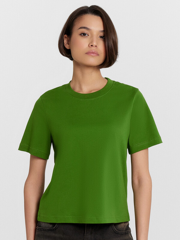 Производитель: Mark Formelle Стильная женская футболка из натурального хлопка станет отличным дополнением вашего гардероба. Легкий и натуральный материал хорошо пропускает воздух, слегка тянется и не стесняет движений, обеспечивая комфорт на весь день. Круглый вырез и спущенная линия плеча с углубленной проймой гарантируют свободу движений, а широкие рукава чуть выше локтя добавляют стильности и удобства. Эта классическая оверсайз футболка – базовый элемент гардероба, который можно комбинировать с чем угодно. Она идеально подходит для отдыха, прогулок и занятий спортом. Однотонный цвет позволяет легко сочетать её с множеством других вещей. Порадуйте себя и своих близких практичными подарками от Mark Formelle!