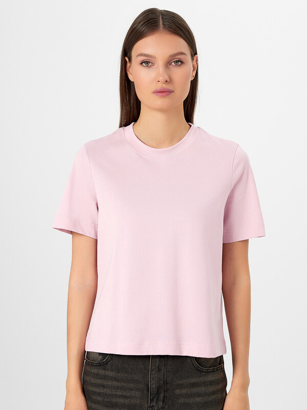 Производитель: Mark Formelle Футболка прямого силуэта из трикотажного полотна кулирка. Горловина круглой формы, широкая обтачка из рибаны.