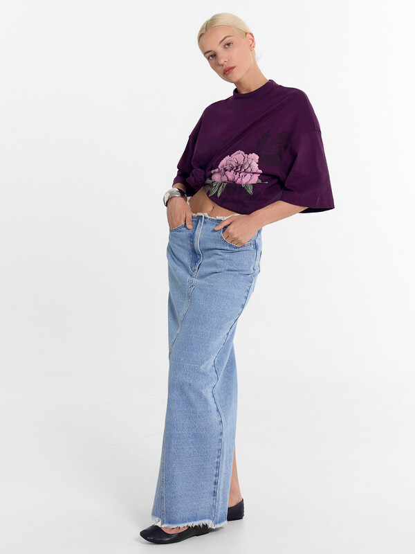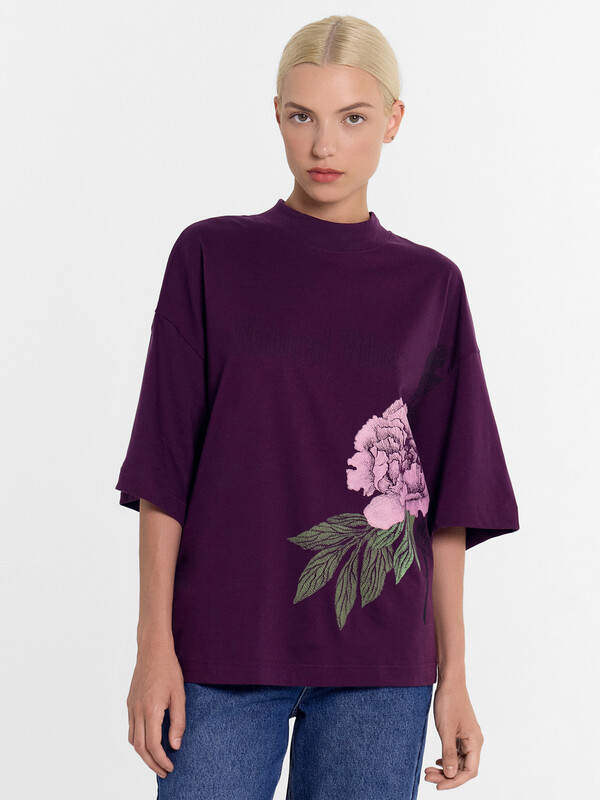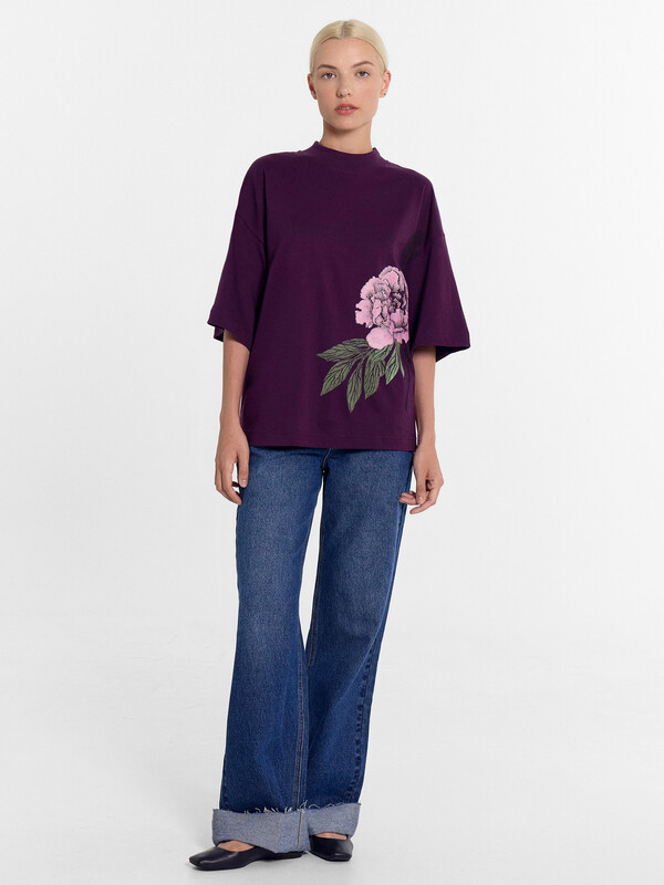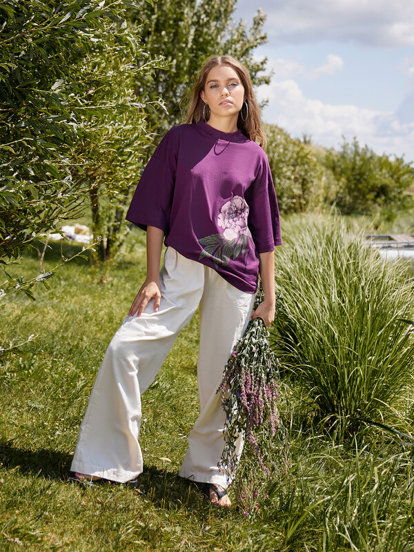 Производитель: Mark Formelle Футболка женская свободного силуэта из трикотажного кулирного пототна. Горловина круглой формы, с широкой обтачкой из рибаны. Плечо спущено, пройма углублена. Рукав втачной, длиной по локоть. Подгибка низа и рукавов широкая.