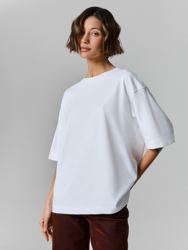 Производитель: Mark Formelle Женская футболка свободного силуэта - идеальное сочетание стиля и комфорта. Модель с круглой горловиной и короткими рукавами со спущенной линией плеча добавит легкости и непринужденности в ваш повседневный образ. Изделие выполнено из трикотажного материала интерлок, отличающегося своей мягкостью и приятными тактильными ощущениями. Интерлок обладает отличной воздухопроницаемостью, что обеспечивает комфорт в течение всего дня. Благодаря своей эластичности, этот материал позволяет коже дышать и обеспечивает свободу движений. Такая футболка станет незаменимой частью вашего гардероба, легко сочетаясь с джинсами, юбками или шортами для создания стильных и удобных образов. Добавьте её в свой гардероб и наслаждайтесь комфортом и элегантностью каждый день!