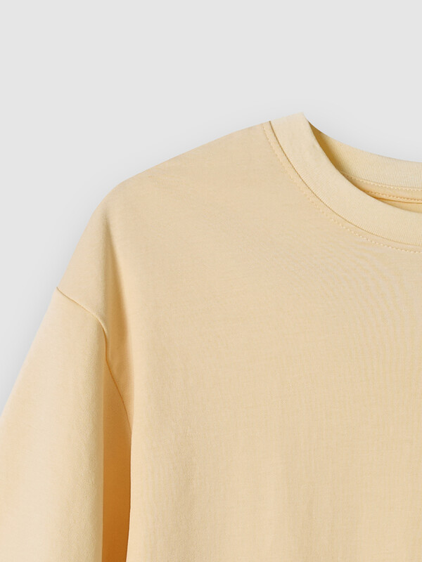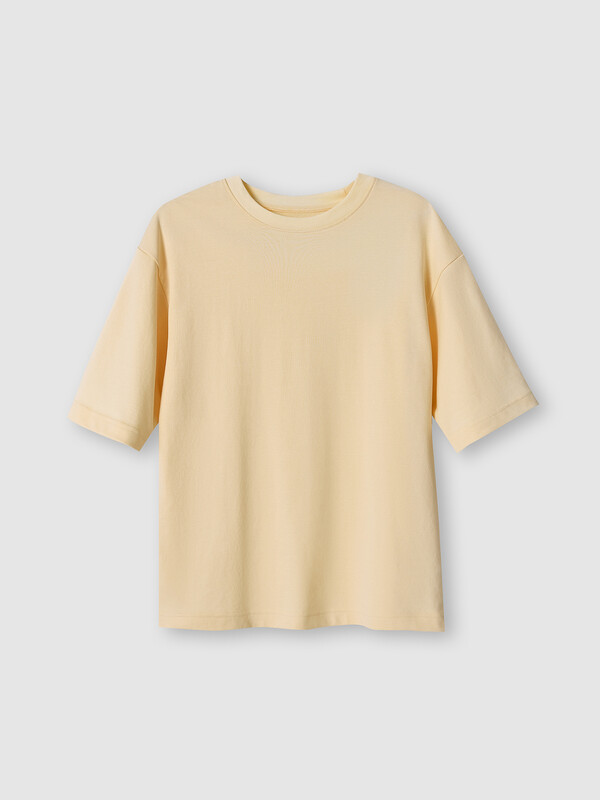 Горловина круглой формы, обтачка горловины из рибаны, шов горловины спинки закрыт бейкой из основного полотна. Плечо спущено, пройма углублена. Рукав втачной, длиной по локоть. Подгибки низа футболки и рукавов широкие. 52% хлопок; 48% полиэстер Комментарии к товару