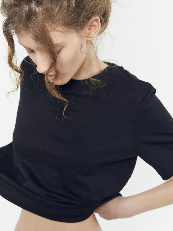 Рукав втачной, широкий. Футболка слегка укорочена.