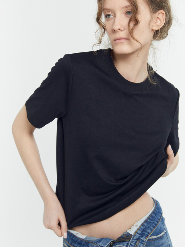 Футболка прямого силуэта из трикотажного полотна интерлок.