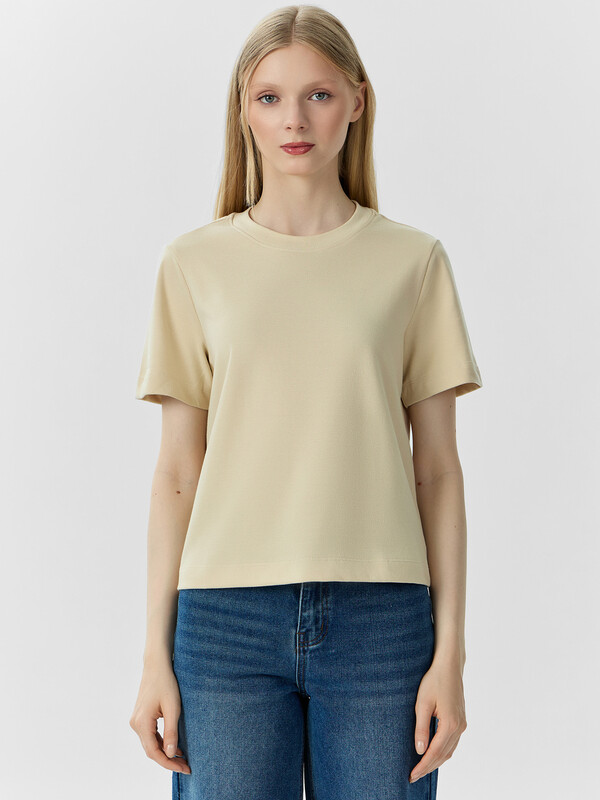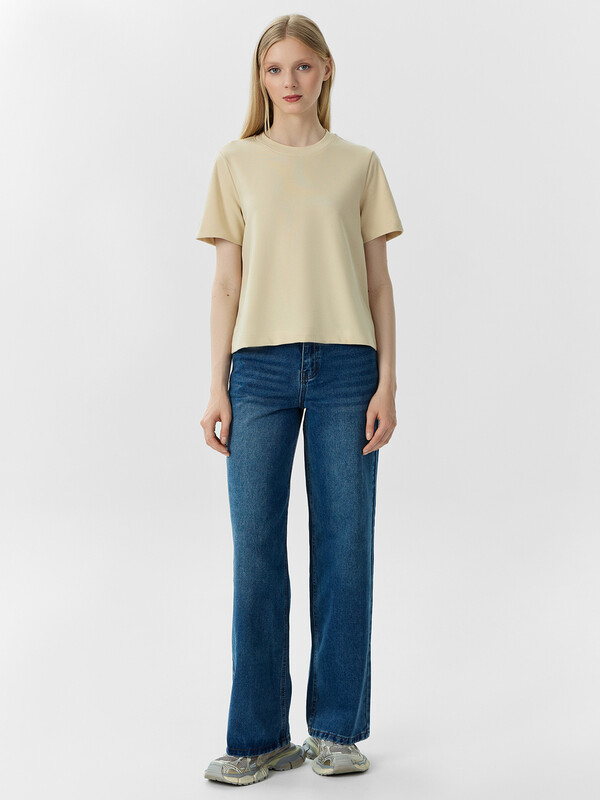 Производитель: Mark Formelle Укороченная женская футболка прямого силуэта из трикотажного материала интерлок – прекрасный выбор для повседневного и стильного образа. Модель с круглой горловиной добавляет элегантности и завершённости. Натуральный материал обеспечивает комфорт и мягкость, позволяя вам чувствовать себя уютно в течение всего дня. Этот предмет гардероба легко сочетать с различными элементами одежды, создавая стильные и индивидуальные образы на любой случай.