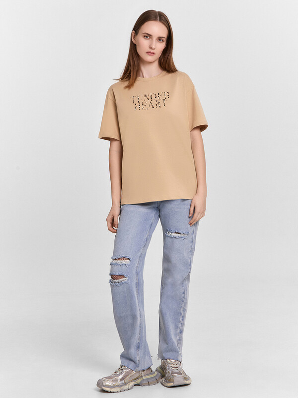Производитель: Mark Formelle Женская футболка прямого свободного кроя станет идеальным дополнением вашего гардероба. Горловина круглой формы и короткие рукава обеспечивают классический и комфортный образ. Нижний срез модели обработан швом вподгибку, что придает изделию аккуратный вид. Изделие выполнено из кулирки —  материала, отличающегося отличной воздухопроницаемостью и мягкостью, что делает его идеальным для повседневной носки. Кулирка отлично сохраняет форму, не растягивается и не теряет цвет после стирки при правильном уходе.