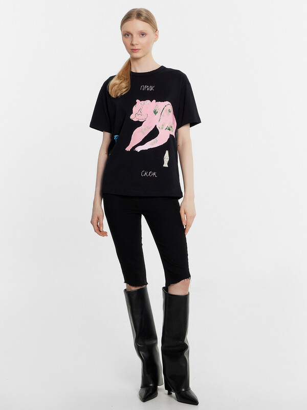 Производитель: Mark Formelle Футболка прямая, свободная. Горловина круглой формы обработана бейкой в 3 сложения из основного полотна. Рукава втачные, корткие. Нижние срезы футболки и рукавов обработаны швом вподгибку.