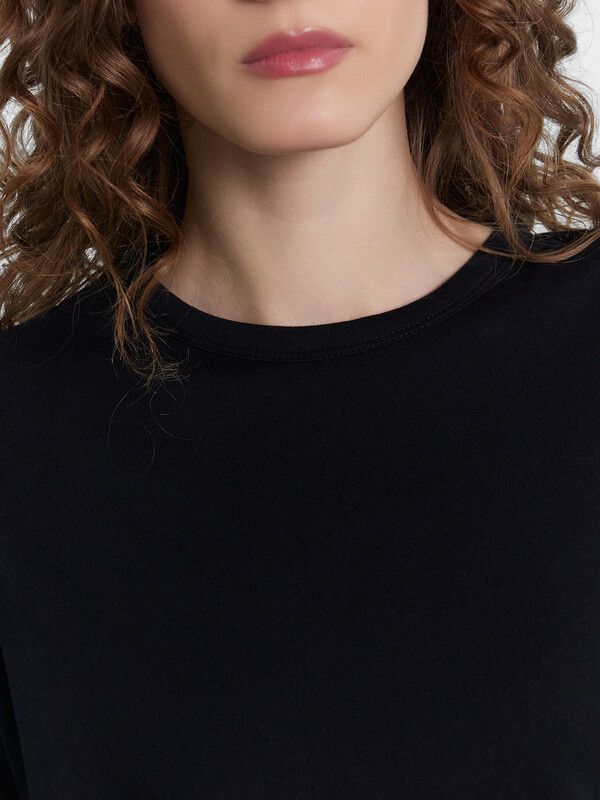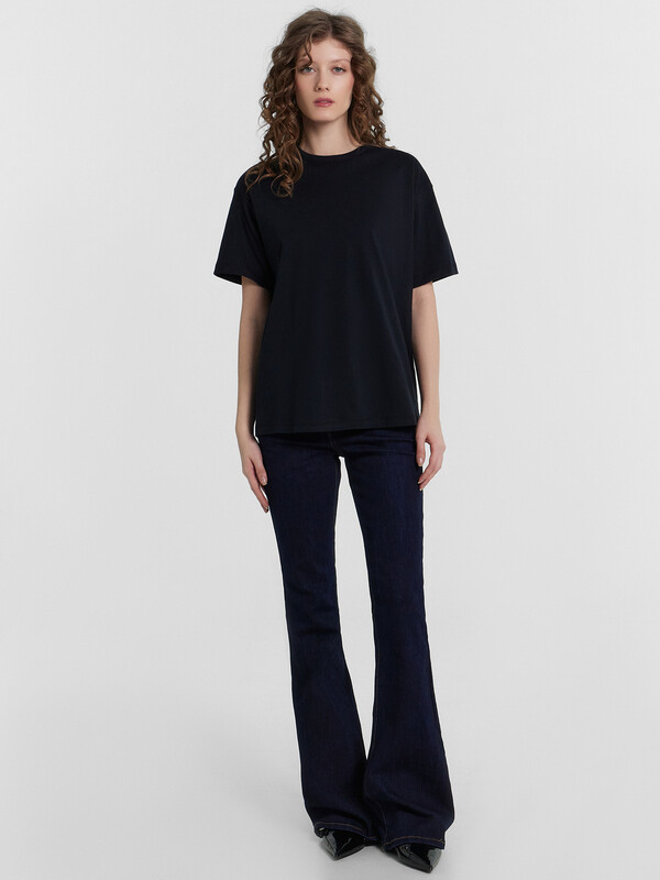 Эта женская футболка станет незаменимой базовой моделью в вашем гардеробе. Прямой и свободный крой обеспечивает комфорт и свободу движений. Круглая форма горловины и короткие рукава делают её универсальной и подходящей для любого случая. Изделие выполнено из хлопковой кулирки, гарантирующей мягкость и приятное ощущение на коже. Эта футболка идеально сочетается с различными элементами гардероба, создавая стильные и удобные образы на каждый день.