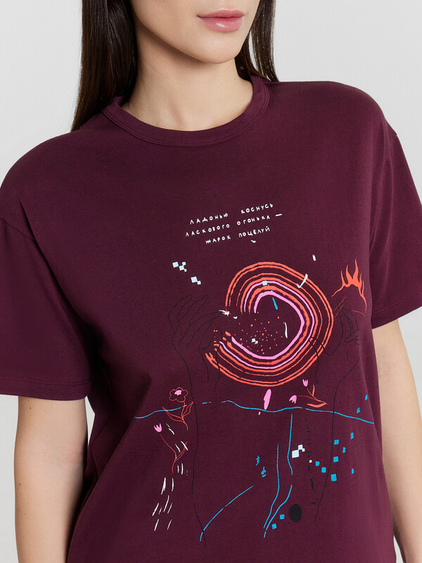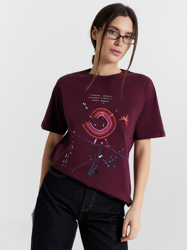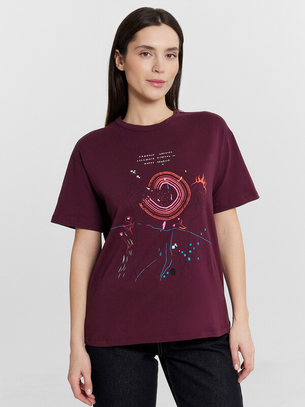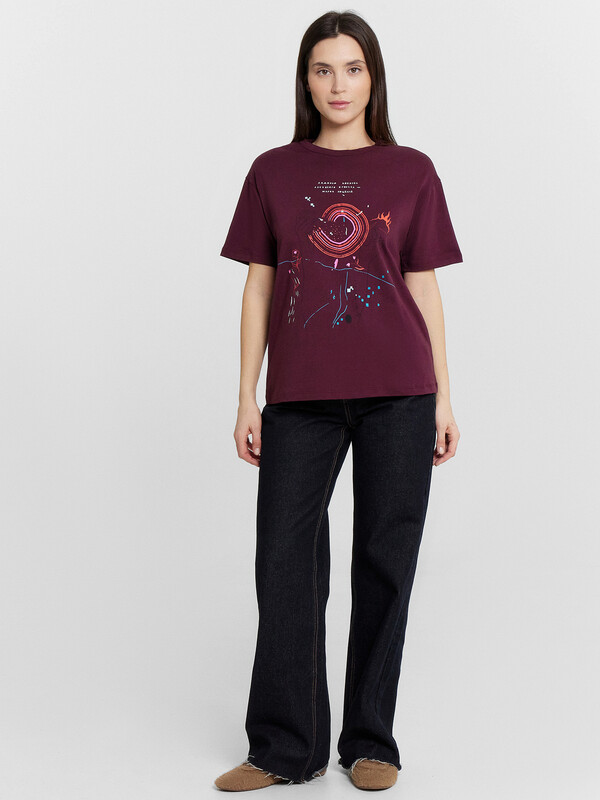 Женская футболка прямого свободного кроя станет идеальным дополнением вашего гардероба. Горловина круглой формы и короткие рукава обеспечивают классический и комфортный образ. Нижний срез модели обработан швом вподгибку, что придает изделию аккуратный вид. Изделие выполнено из кулирки — материала, отличающегося отличной воздухопроницаемостью и мягкостью, что делает его идеальным для повседневной носки. Кулирка отлично сохраняет форму, не растягивается и не теряет цвет после стирки при правильном уходе.