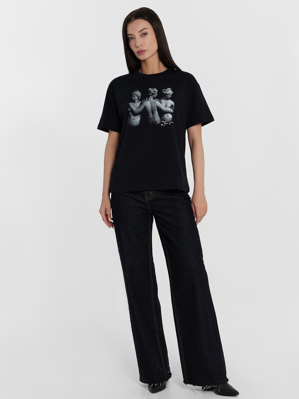 Производитель: Mark Formelle Женская футболка прямого свободного кроя станет идеальным дополнением вашего гардероба. Горловина круглой формы и короткие рукава обеспечивают классический и комфортный образ. Нижний срез модели обработан швом вподгибку, что придает изделию аккуратный вид. Изделие выполнено из кулирки —  материала, отличающегося отличной воздухопроницаемостью и мягкостью, что делает его идеальным для повседневной носки. Кулирка отлично сохраняет форму, не растягивается и не теряет цвет после стирки при правильном уходе.