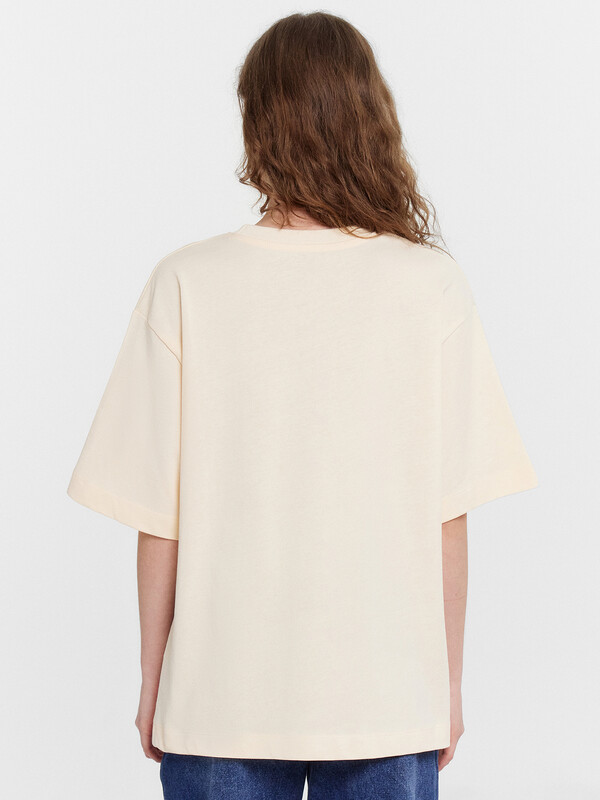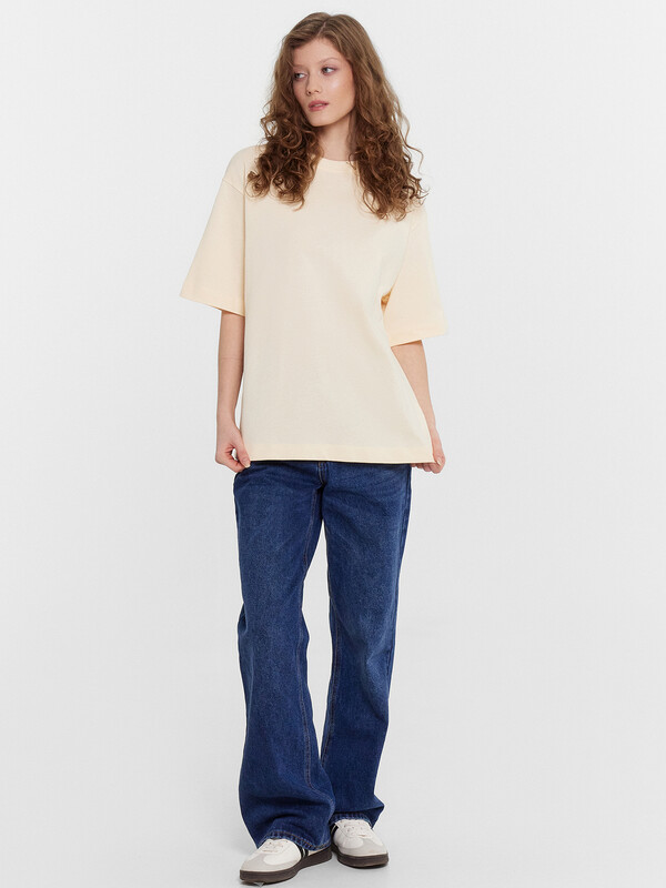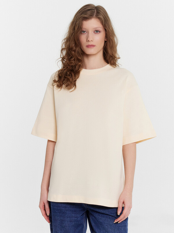 Женская футболка оверсайз – идеальный выбор для стильного и комфортного повседневного образа. Модель с круглой горловиной и короткими рукавами придает современный вид, а спущенная линия плеча добавляет нотку непринужденности. Выполненная из мягкой и приятной хлопковой кулирки, эта футболка обеспечивает ощущение комфорта и легкости при носке. Отлично сочетается с различными элементами гардероба, позволяя создавать разнообразные и стильные образы.