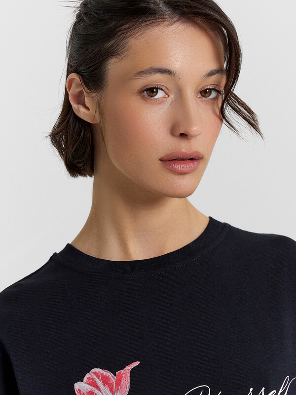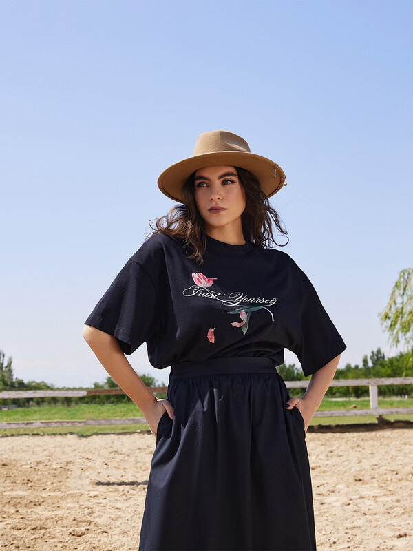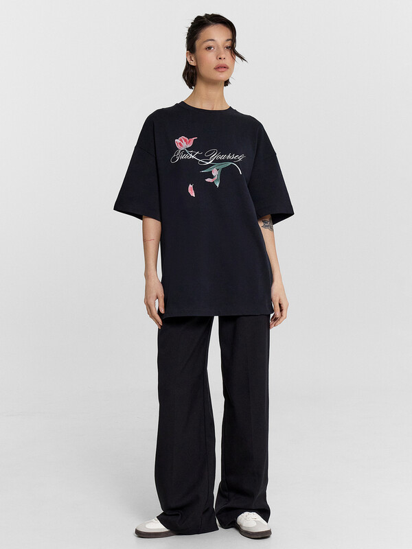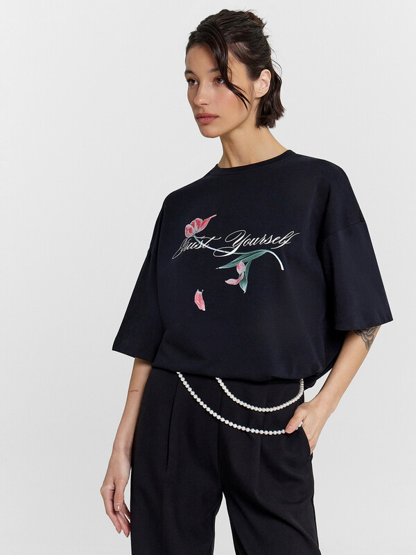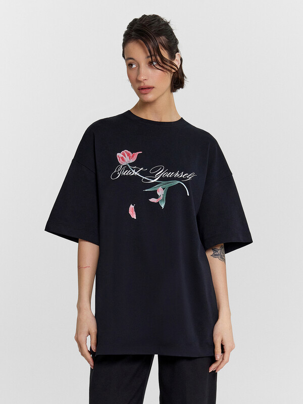 Эта женская футболка оверсайз из кулирки станет отличным дополнением вашего гардероба. Горловина круглой формы, спущенное плечо и углубленная пройма создают стильный и комфортный образ. Широкий рукав длиной чуть выше локтя добавляет непринужденности и комфорта. Изделие выполнено из нежной хлопковой кулирки — материала, обладающего отличной воздухопроницаемостью, позволяющего коже дышать и сохранять свежесть в течение всего дня. Кулирка также невероятно мягкая и приятная на ощупь, что обеспечивает комфорт при носке. Такая футболка станет идеальным выбором для повседневной носки, гарантируя стильные и уютные образы каждый день.