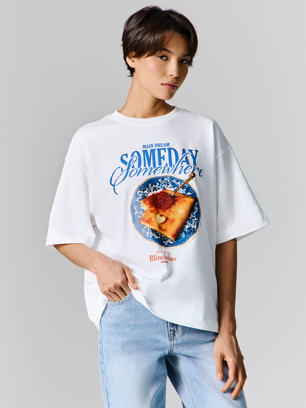 Эта футболка станет идеальным выбором для новогодних вечеринок, зимних прогулок и уютных вечеров в кругу семьи. Сочетайте ее с джинсами, юбками-пачками или кожаными брюками — образ будет одинаково очаровательным и запоминающимся.