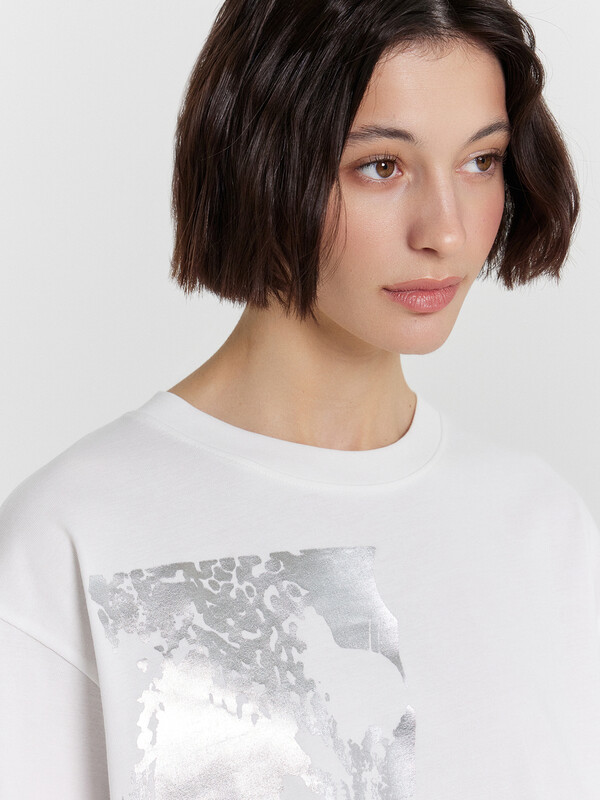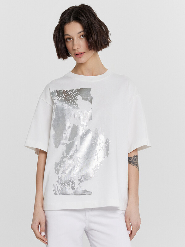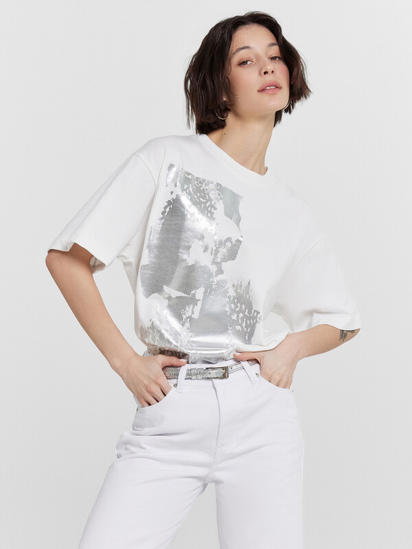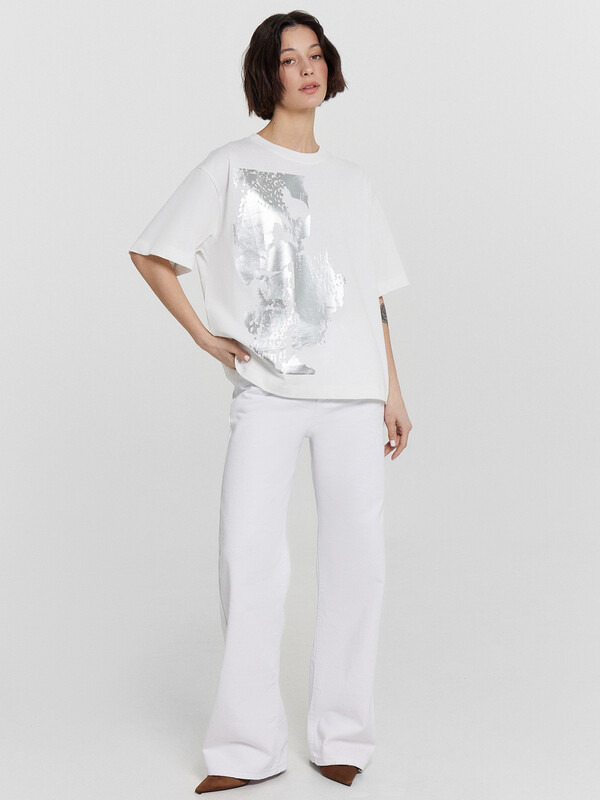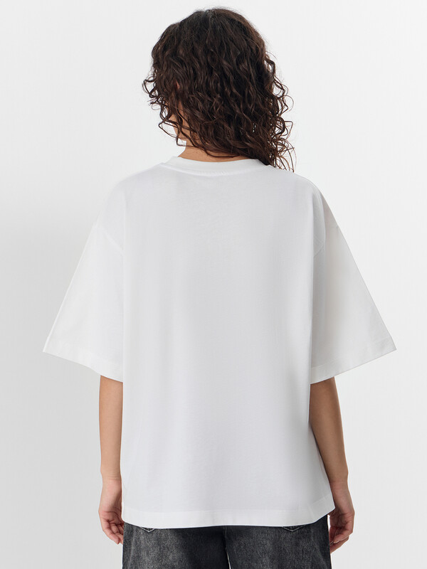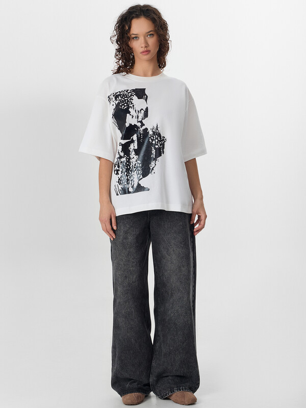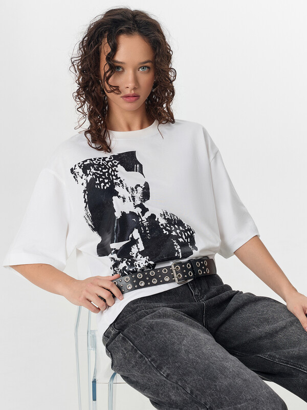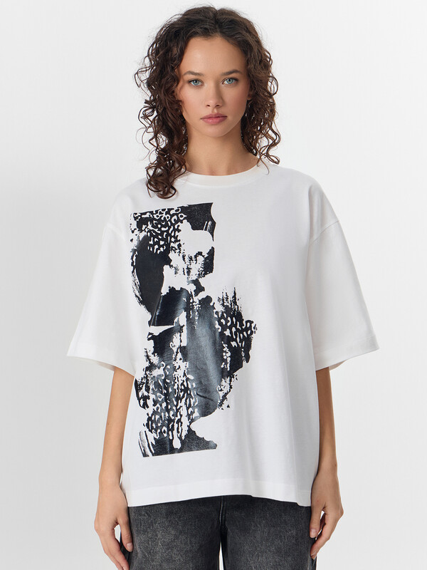 Эта женская футболка оверсайз — идеальное сочетание комфорта, стильного дизайна и универсальности. Модель выполнена из нежной хлопковой кулирки — мягкого, приятного на ощупь материала, который обладает высокой воздухопроницаемостью. Благодаря этому ткань позволяет коже дышать, предотвращая перегрев и обеспечивая комфорт даже в жаркую погоду. Отличная износостойкость материала гарантирует долгий срок службы изделия, а также сохранение формы и качества даже после многократных стирок. Свободный крой создает расслабленный и современный образ, позволяя легко комбинировать футболку с различными элементами гардероба. Округлая горловина добавляет классический акцент, а рукава со спущенной линией плеча придают непринужденности и легкости в движении. Этот стильный элемент гардероба идеально подходит для повседневного ношения, прогулок, встреч с друзьями и активного отдыха. Дополните свой гардероб этой удобной и модной футболкой, наслаждаясь качеством и комфортом каждый день!