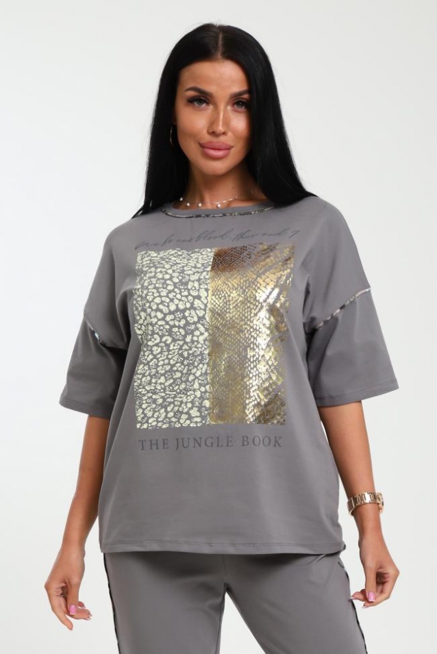 Трикотажная футболка премиум качества с модным принтом от NINEL. Модель выполнена из высококачественного кулирного волокна с лайкрой.