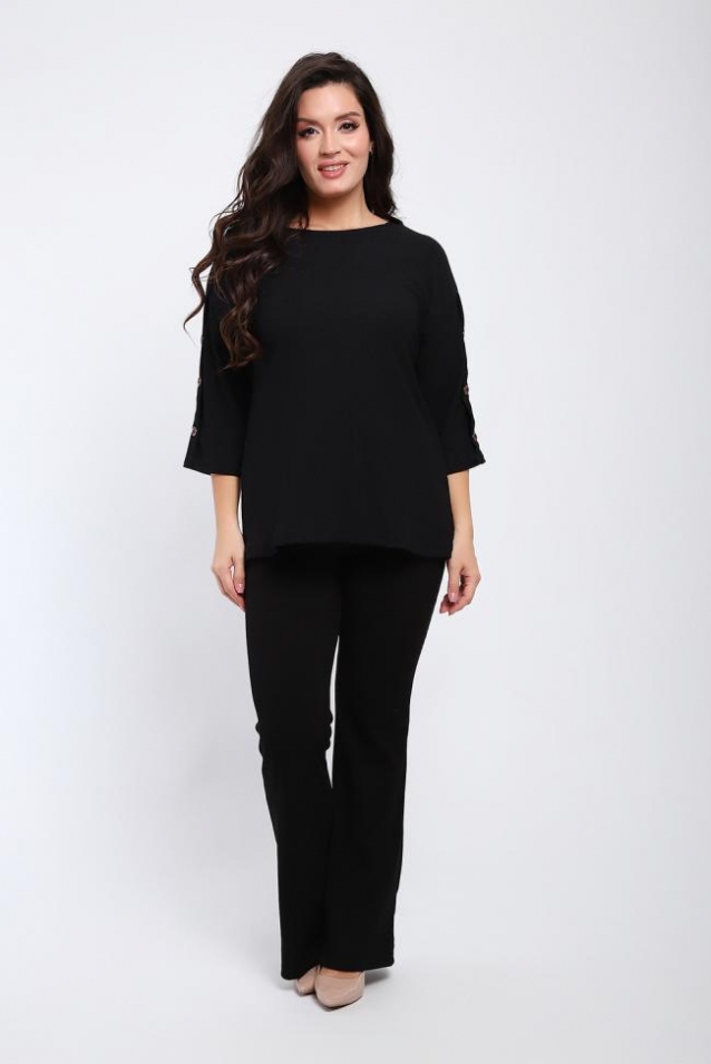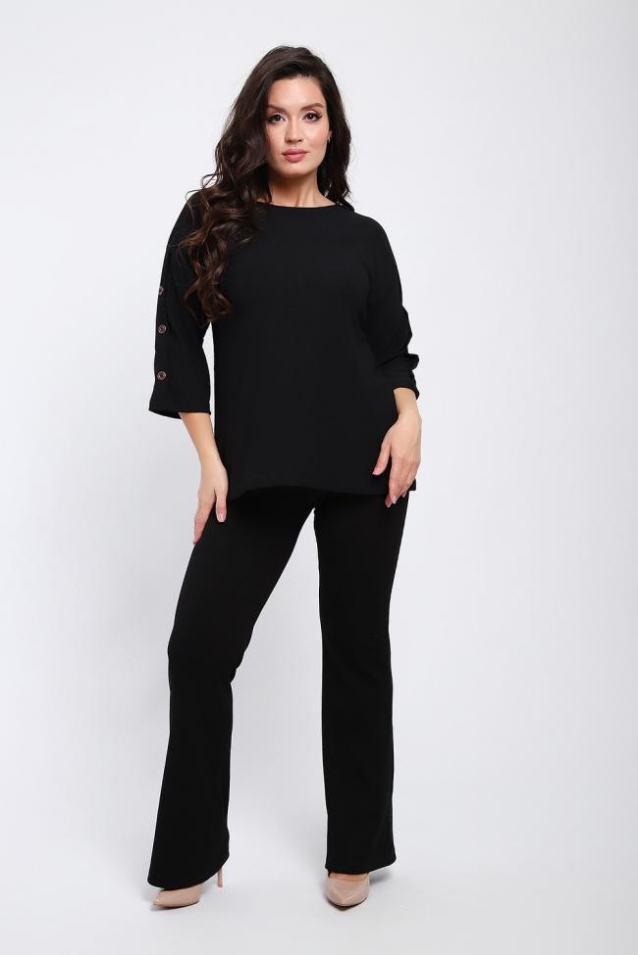 Футболка женская свободного прилегания с рукавами 3/4, украшенная пуговицами на рукавах.