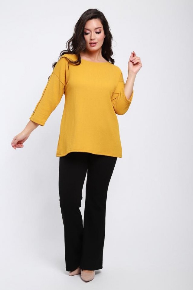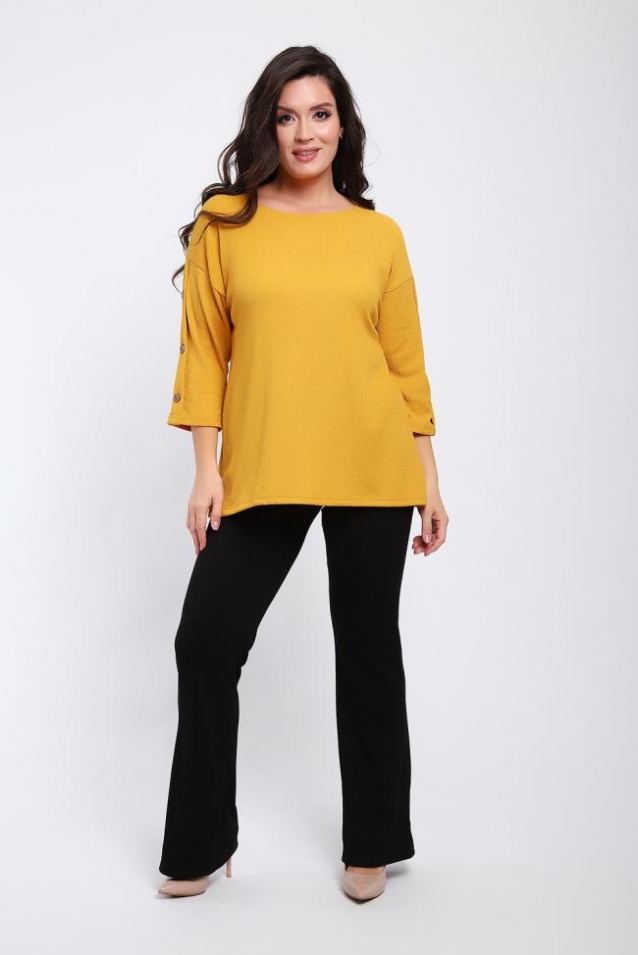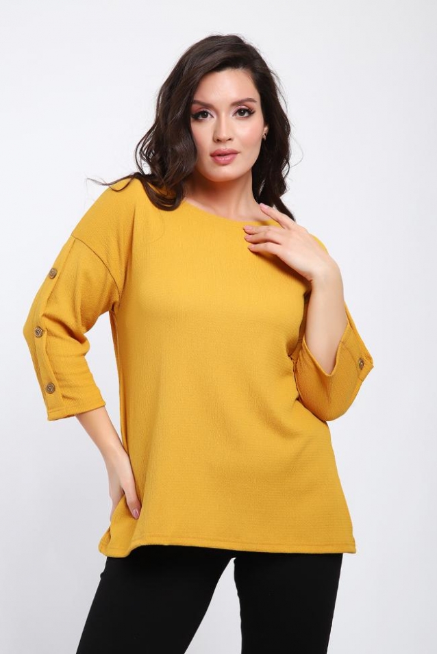 Футболка женская свободного прилегания с рукавами 3/4, украшенная пуговицами на рукавах.