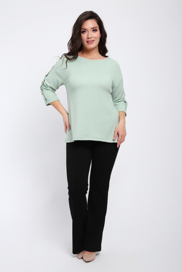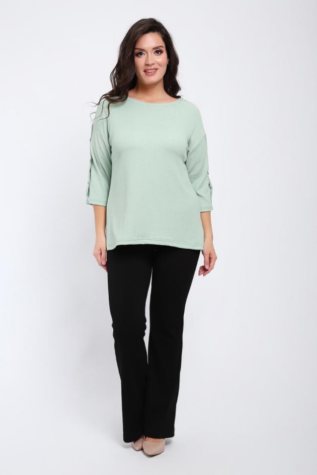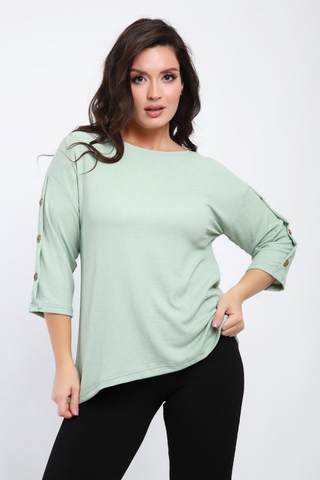 Футболка женская свободного прилегания с рукавами 3/4, украшенная пуговицами на рукавах.