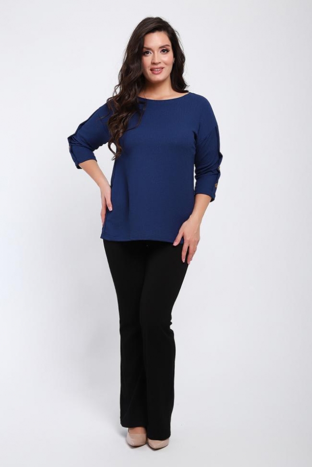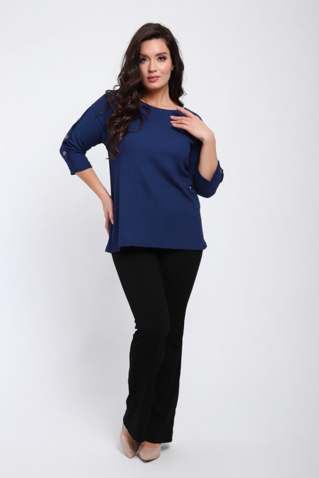 Футболка женская свободного прилегания с рукавами 3/4, украшенная пуговицами на рукавах.