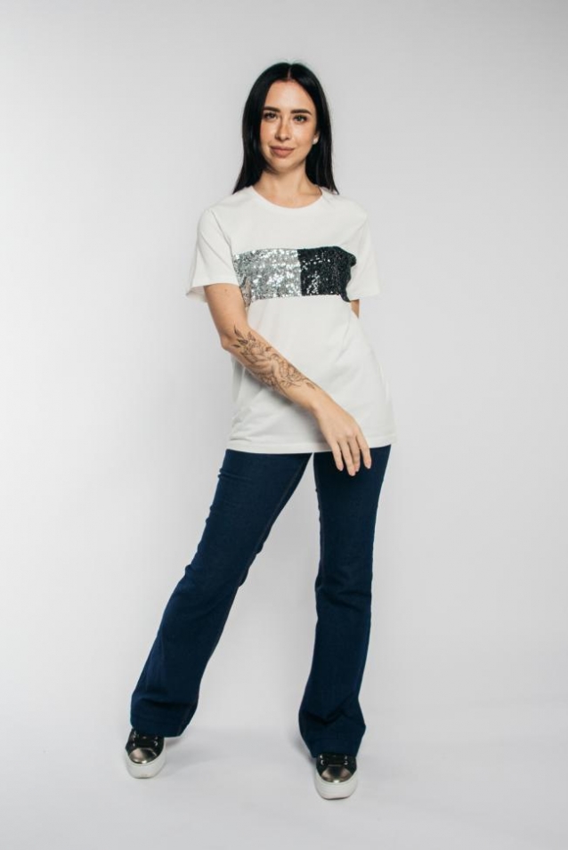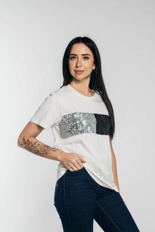 Базовая женская футболка прямого силуета с округлым воротом и коротким рукавом. Нарядная футболка с вышивкой пайетками - отличный вечерний и праздничный вариант одежды. Стильную классическую футболку можно надевать как в офис, так и на не формальную встречу. Размерный ряд с 44 по 54. Крой данной модели дает ощущение легкости и комфорта, не будет сковывать движений, что особенно важно для ежедневной носки. ДЛЯ ЖЕНЩИН, ПРЕДПОЧИТАЮЩИХ СТИЛЬ ОВЕРСАЙЗ, НЕОБХОДИМО БРАТЬ ФУТБОЛКУ НА 2 РАЗМЕРА БОЛЬШЕ. Майка с принтом выполнена из 100% хлопок кулирной глади, такой состав поможет изделию ПОСЛЕ СТИРОК НЕ ДЕФОРМИРОВАТЬСЯ И НЕ ЗАКАТЫВАТЬСЯ. Гарантия качества. Модель рассчитана на рост 170 см.