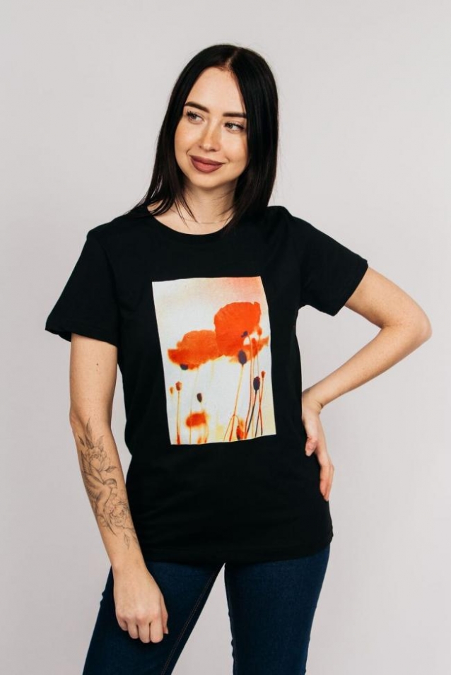 Женская футболка с фото - принтом идеальный выбор для модных женщин, которые ищут базовую одежду. Футболка классического фасона, прямого кроя, с втачным коротким рукавом и круглой горловиной. Футболка новой коллекции подчеркнет ваш гардероб, а также идеально подойдет для создания ярких и стильных образов. Футболку будет удобно носить навыпуск или заправлять, отлично сочетается с юбкой, брюками с джинсами, а также можно одеть под пиджак, жакет или кардиган. Футболка выполнена из мягкого хлопкового полотна. Уход за изделием: стирать футболку с вещами похожего цвета и вынимать сразу после стирки. Гладить с изнаночной стороны. После стирки футболка сохранит свой первозданный вид, горловина не вытягивается, а боковые швы не ведет. Модель рассчитана на рост 164-170см. Полотно: Кулирная гладь-пенье. Состав: 100% Хлопок. Плотность 160 гр.