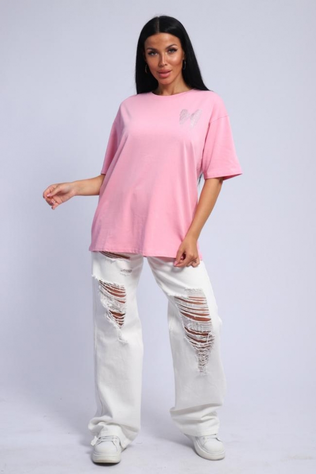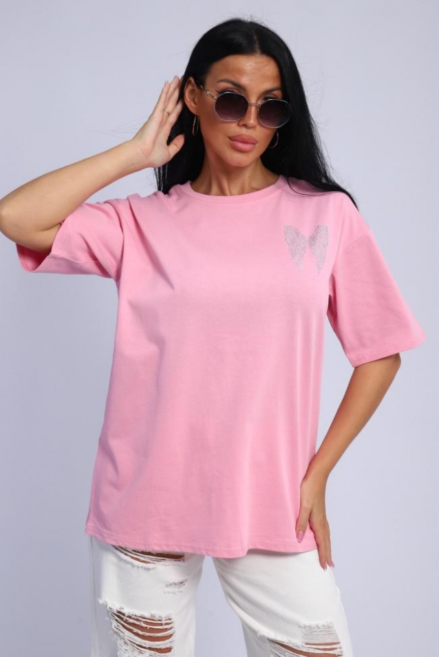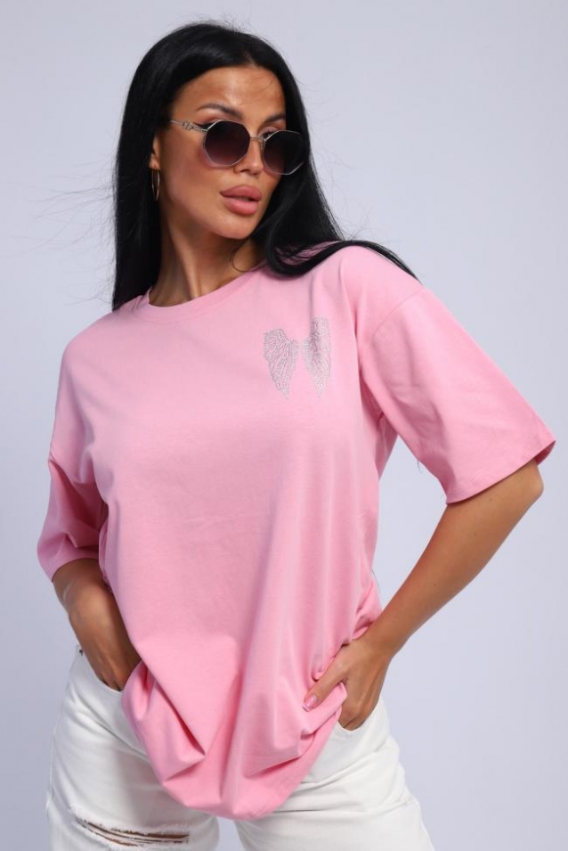 Модная и нарядная футболка со стразами в виде крыльев. Плотная и приятная ткань. Стразы расположены спереди и на спине. Очень красиво переливаются на солнце. Футболка сделает образ изысканным и уникальным. Благодаря уникальному дизайну будет незаменимым элементом вашего гардероба. Подойдет на день рождение, для офиса, как вечерняя, праздничная и повседневная одежда. Рукав спущенный и не сковывает движения. Длина рукава указана от плечевого шва. Перед стиркой вывернуть наизнанку. Производство Китай.