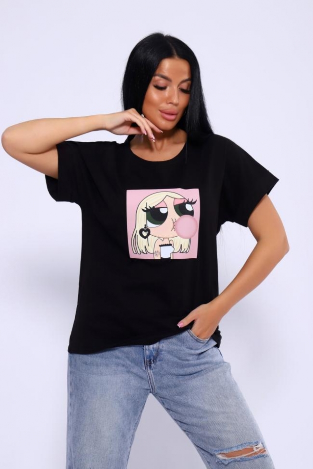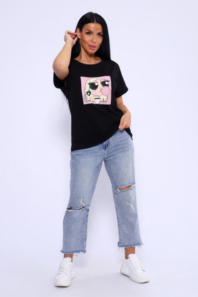 Футболка женская с ярким молодёжным принтом из мягкого, гипоаллергенного хлопкового трикотажа. Модель слегка приталенного силуэта, округлая горловина, спущенная пройма на манжете. Футболка - это универсальный элемент гардероба, который можно носить как на работу, так и на прогулку, в спортзал и просто дома. Комфортная, приятная к телу футболка подойдёт девушке любой фигуры и возраста.