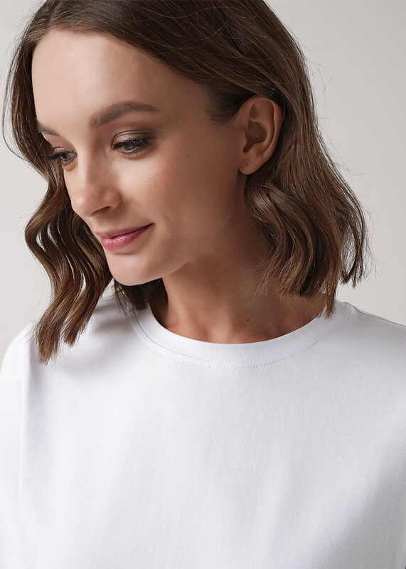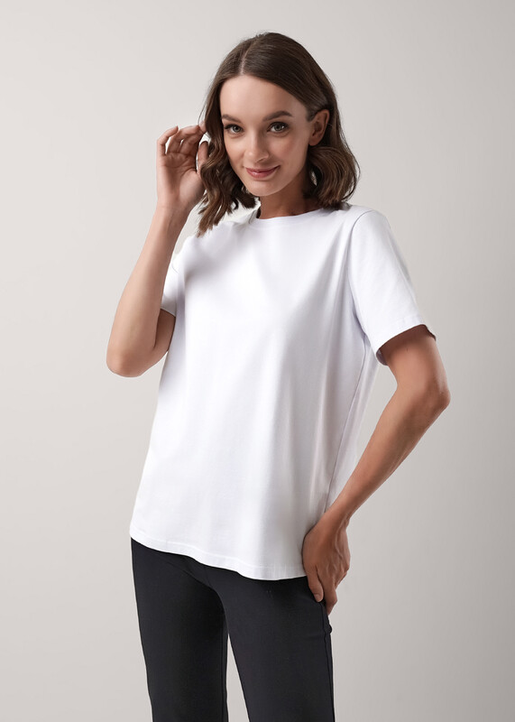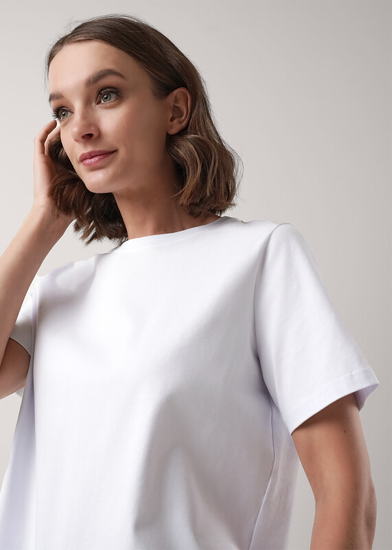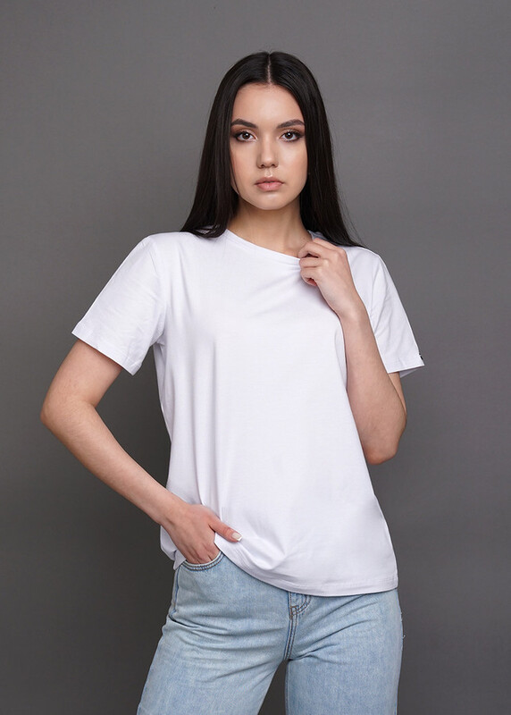 Футболка женская из эластичного хлопкового полотна. Круглая горловина. Короткий рукав.