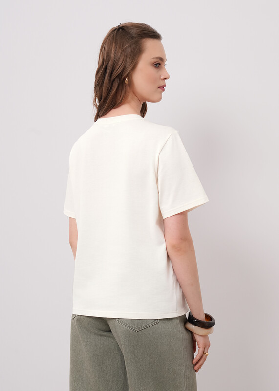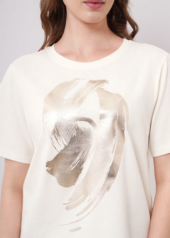 Футболка из хлопкового трикотажного полотна. Округлая горловина с обтачкой. Короткий втачной рукав. Спереди принт фольга.