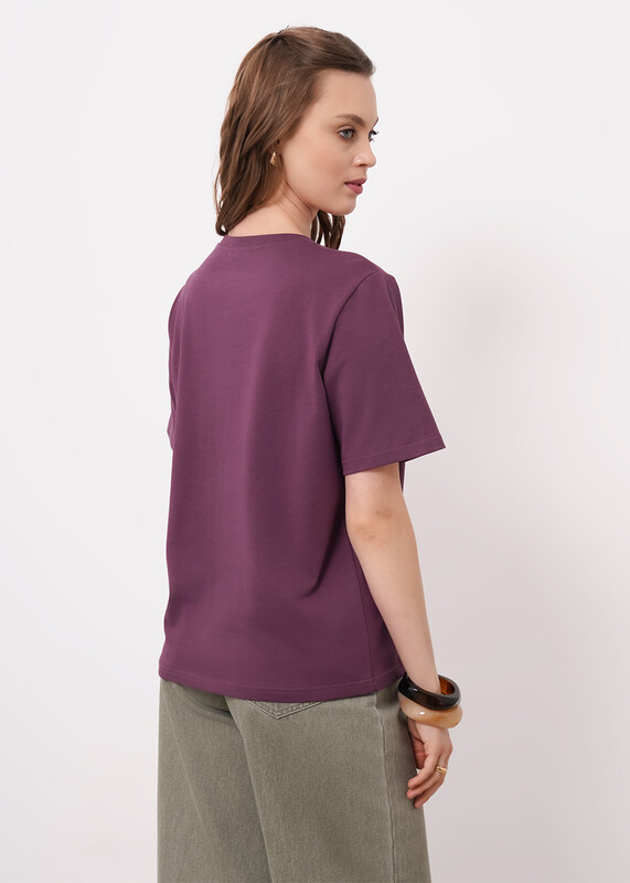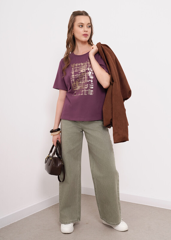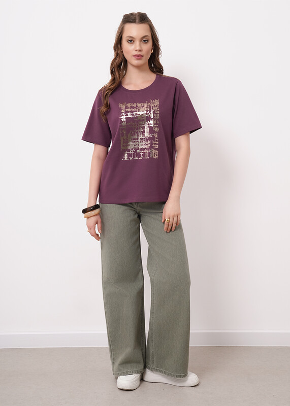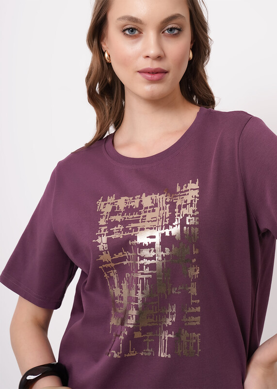 Футболка из хлопкового трикотажного полотна. Округлая горловина с обтачкой. Короткий втачной рукав. Спереди принт фольга.