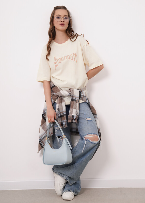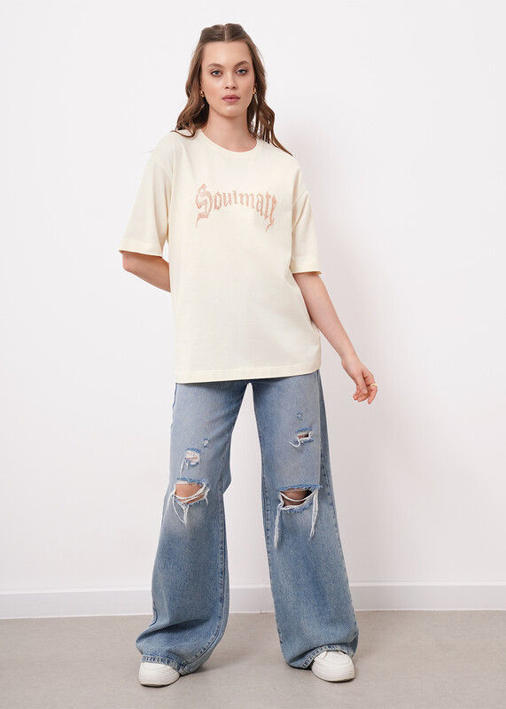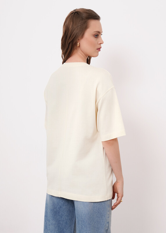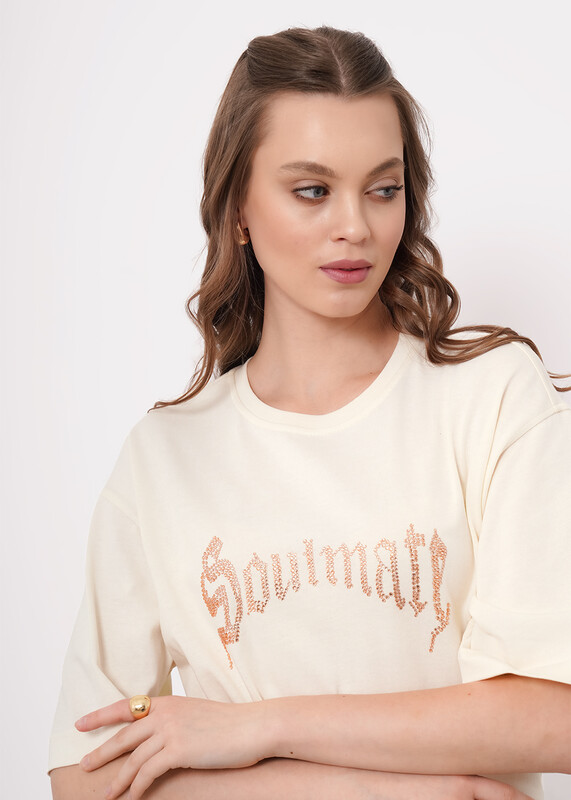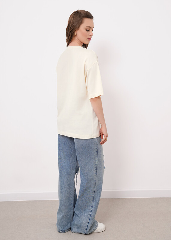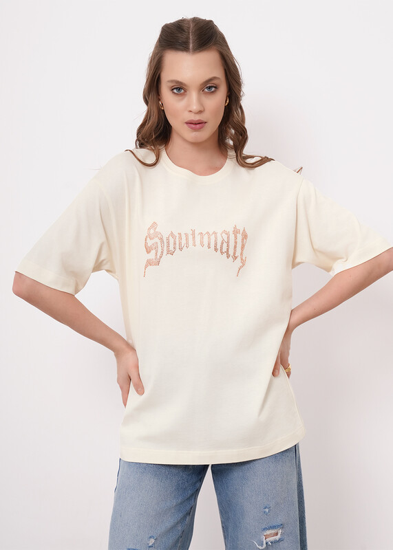 Производитель: Clever Футболка оверсайз из хлопкового трикотажного полотна. Короткий спущенный рукав. Округлая горловина с обтачкой из рибаны. По спинке средний шов. По переду термостразы.