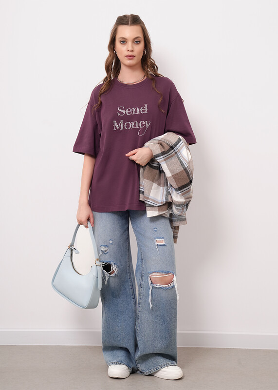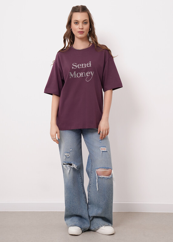 Производитель: Clever Футболка оверсайз из хлопкового трикотажного полотна. Короткий спущенный рукав. Округлая горловина с обтачкой из рибаны. По спинке средний шов. По переду термостразы.