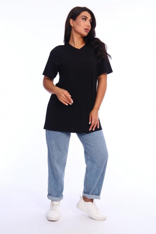Женская футболка свободного кроя оверсайз в классических цветах - белом и черном. Она идеально подойдет для размеров 42 до 60 благодаря своей универсальности. На спинке футболки расположен рисунок, придавая изделию небольшую изюминку и делая его еще более интересным.