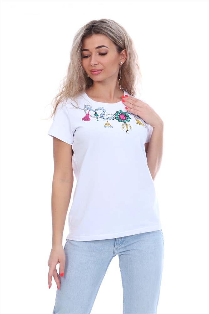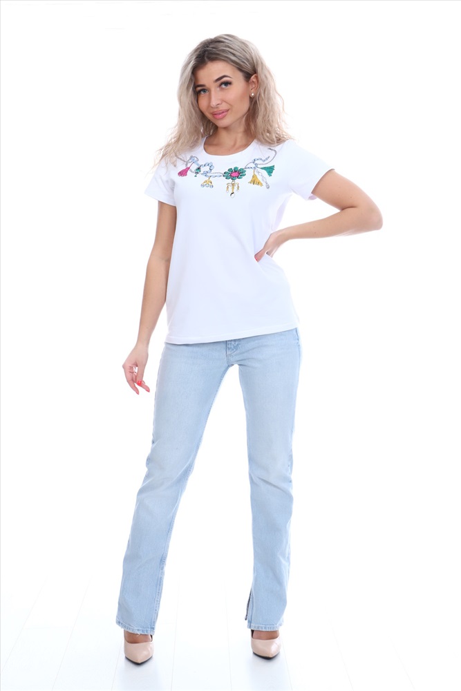 Состав: 95% ХБ; 5% лайкра Модель: Футболка женская ФЖ034 Тип товара: футболка Материал: кулирка с лайкрой | кулирка с лайкрой Бренд: TRIKOTEL Длина: средняя длина Отделка: с печатью Рисунок: цветы Рукав: короткий рукав Сезонность: лето | осень | весна | зима Силуэт: прямой Стиль: повседневный Футболка женская с оригинальным принтом, из хлопковой ткани с лайкрой. Ткань держит форму, не вытягивается, приятная на ощупь. Стильная футболка оригинального фасона. Посадка свободная. Таблица размеров и веса