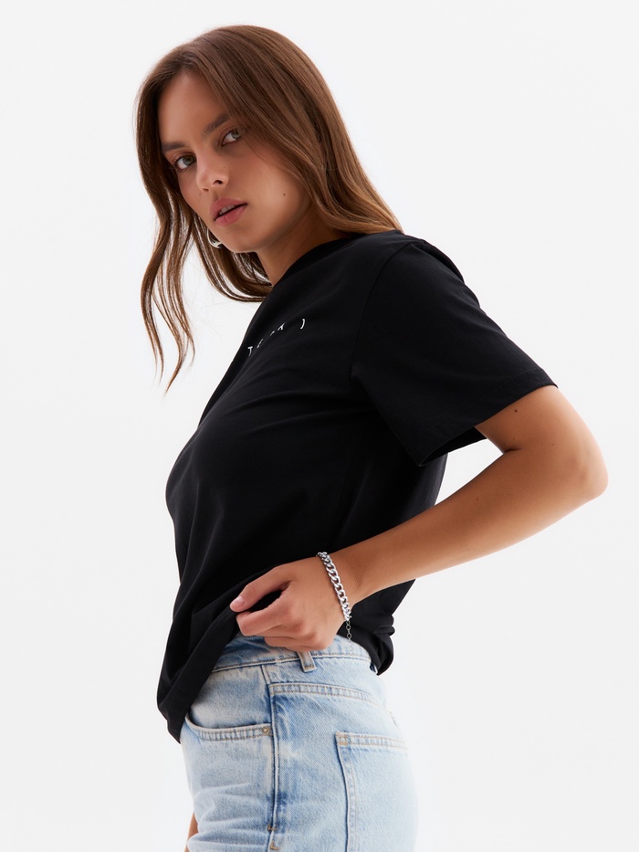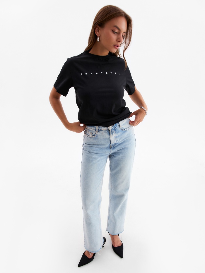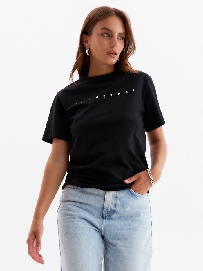Габариты: 26 x 26 x 1 Длина рукава, см: 22,6 Рекомендации по уходу: Стирка при 30 °С, Бережный режим глажки, Не отбеливать Обхват талии, см: 96 Длина изделия по спинке, см: 62.5 Обхват груди, см: 96 Фиксированная цена: Да Страна: Россия В боксе: 40 шт Состав: Хлопок 100% Материалы: хлопок Фасовка: по 1 шт Сертификат: ЕАС Цвет: Чёрный Для кого: Для женщины Назначение: Повседневная Ткань: Кулирная гладь Рост, см: 170 Рост модели на фото, см: 172 Сезон: Лето Тематика: Надписи, цифры, буквы Длина рукава: Короткий Вырез горловины: Круглый Декоративные элементы: Без элементов Покрой: Прямой Вид: С рисунком Состав ткани: Хлопок Параметры модели на фото (ОГ-ОТ-ОБ): 80-61-91 Размер одежды: 40-42 Комментарии к товару