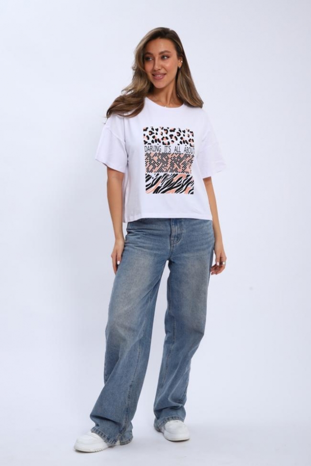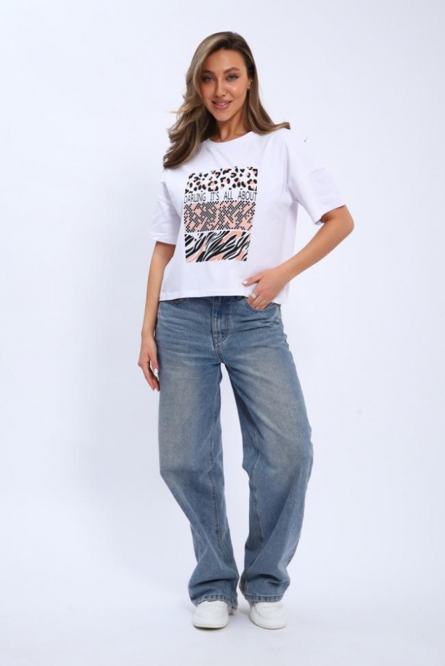 Футболка женская с принтом от Modellance - это идеальный выбор для комфорта и стиля. Изготовленная из мягкого трикотажа с добавлением лайкры, она подарит вам приятные тактильные ощущения и свободу движений. Оверсайз крой идеально подходит для беременных и тех, кто предпочитает свободный стиль. Яркий принт футболки добавит вашему образу индивидуальности, а отсутствие карманов подчеркнет лаконичность дизайна. Эта стильная футболка станет незаменимой вещью в вашем гардеробе, как для дома, так и для прогулок.