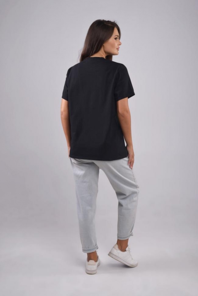 Футболка женская, повседневная, нарядная, спортивная, большие размеры, свободный крой, удлиненная, круглая горловина, черного цвета из трикотажного хлопок с эластаном, 170 г/м2 с прикольным принтом. Принт дисчардж (краска не наносится на ткань, а удаляется с неё со специально подготовленного пигментного слоя, становясь частью структуры волокон). Принт в стиле гранж, модный, яркий, идеальный выбор для повседневных образов, который подчеркнет вашу индивидуальность и женственность. Модель - размер одежды M (46) 170-92-98, футболка на модели в размере L
