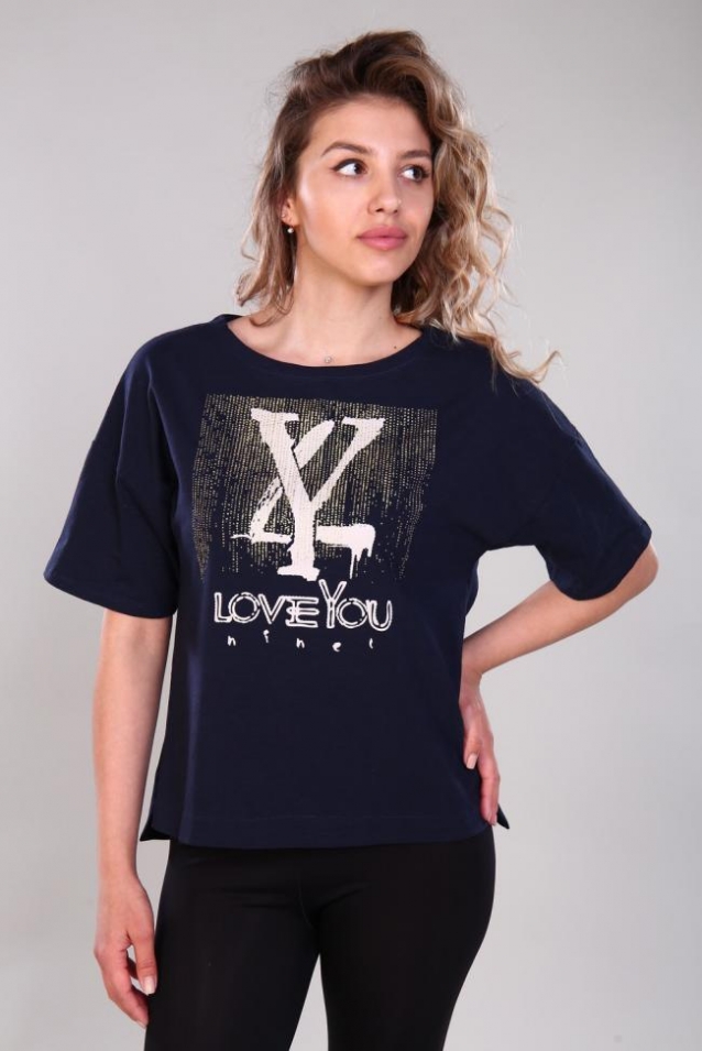 Женская футболка в нескольких расцветках, свободного покроя с принтом.